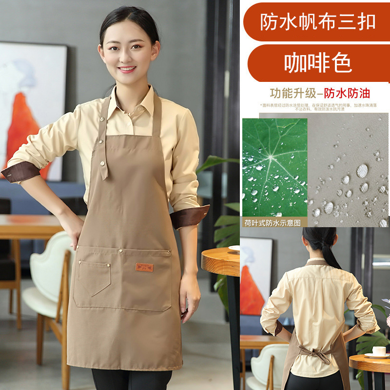 • YL 3버튼 방수 캔버스 앞치마 다크 브라운