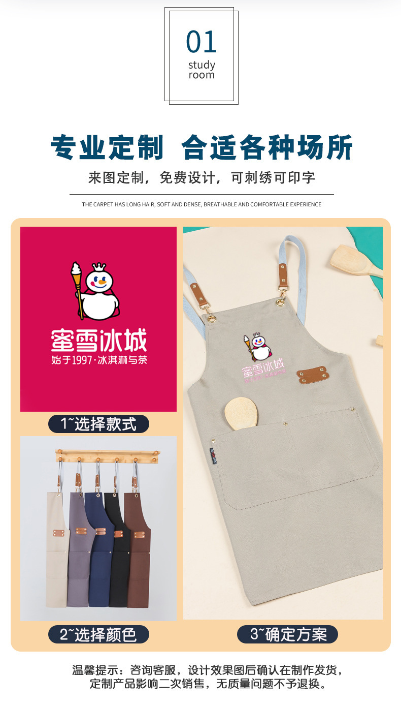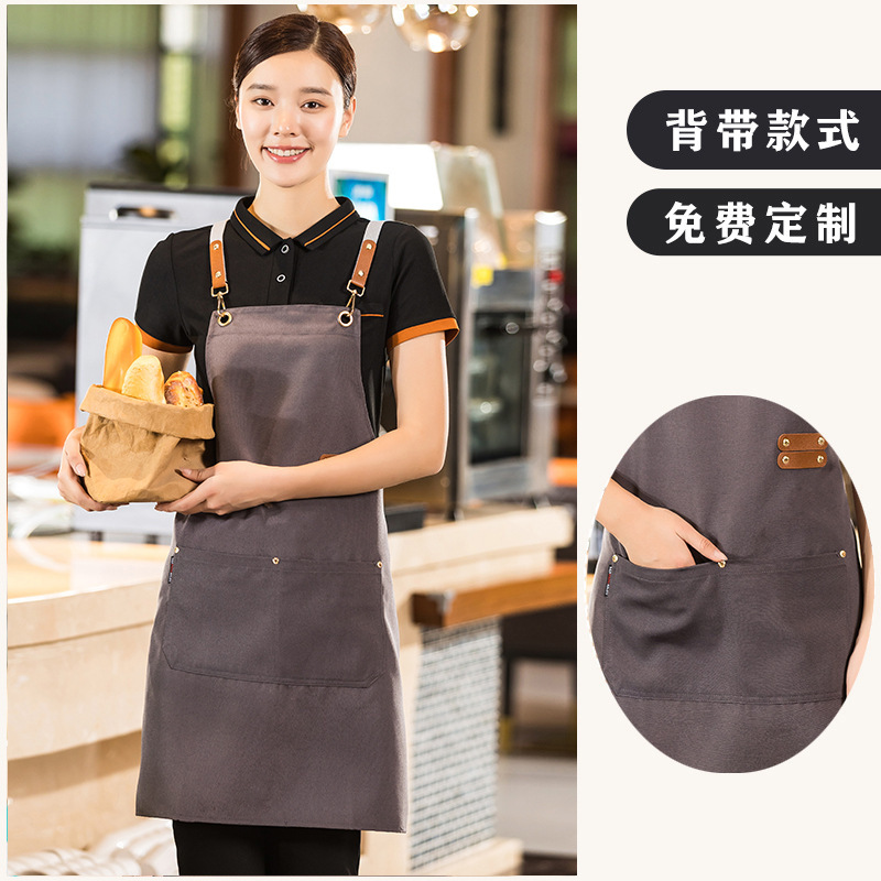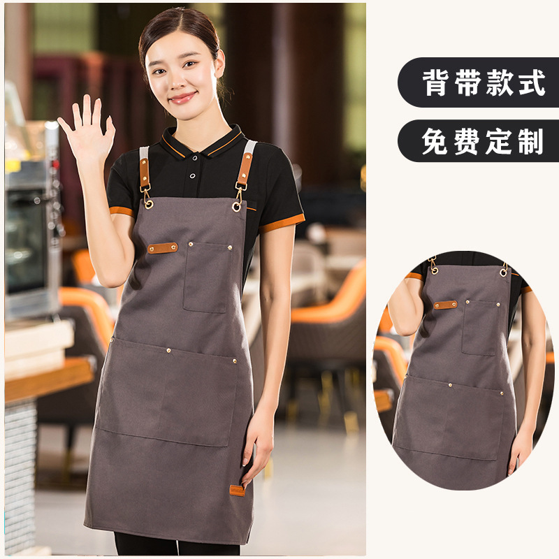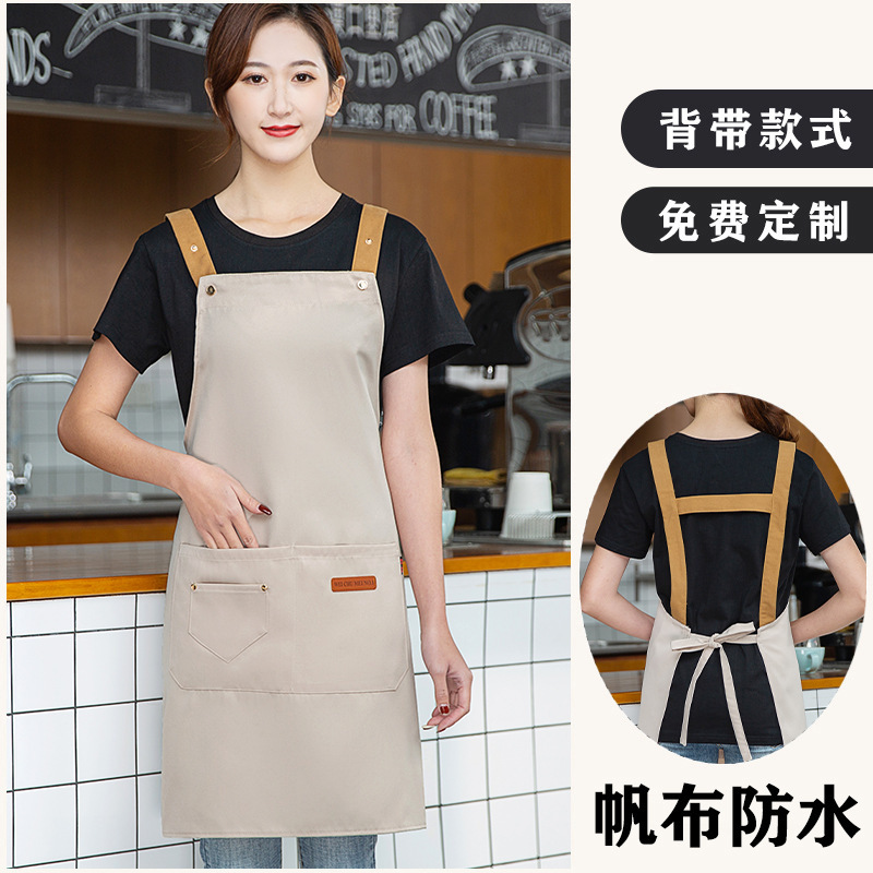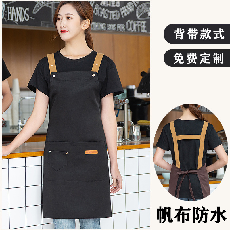 캔버스 앞치마 맞춤 로고 인쇄 우유 차 가게 꽃 가게 커피 뜨거운 다이어 방수 작업복 여성