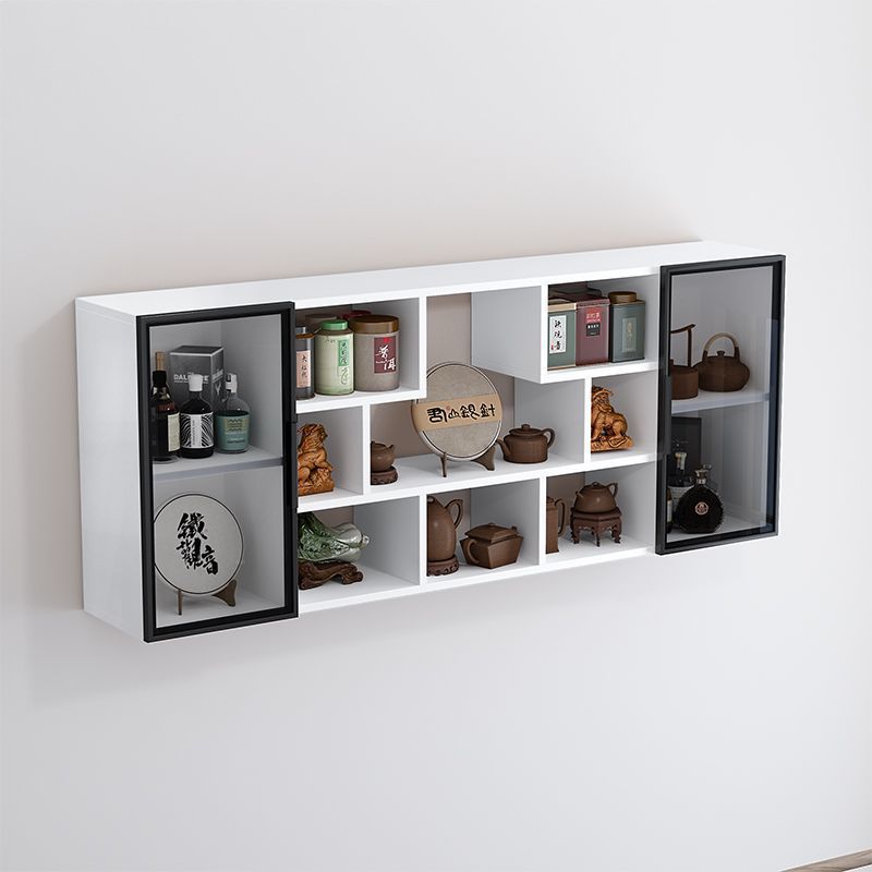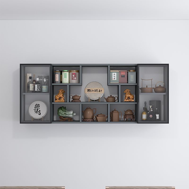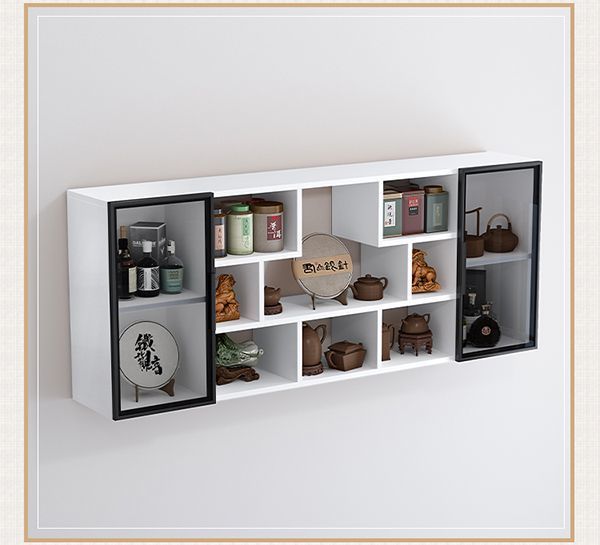 골동품 랙 솔리드 우드 중국 벽에 장착 된 주전자 디스플레이 랙 스토리지 랙 방진 강화 유리 도어 Duobao Pavilion