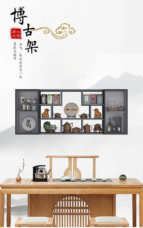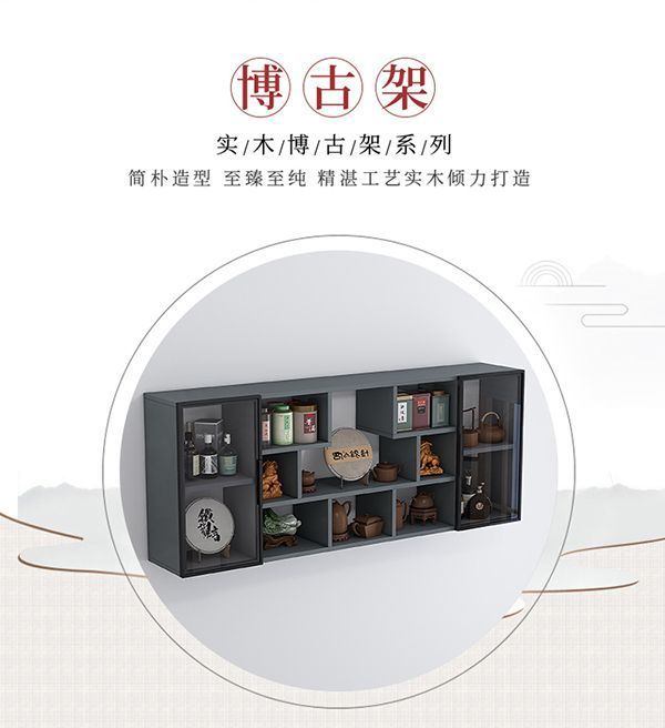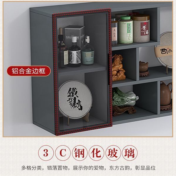 골동품 랙 솔리드 우드 중국 벽에 장착 된 주전자 디스플레이 랙 스토리지 랙 방진 강화 유리 도어 Duobao Pavilion스토어 가기