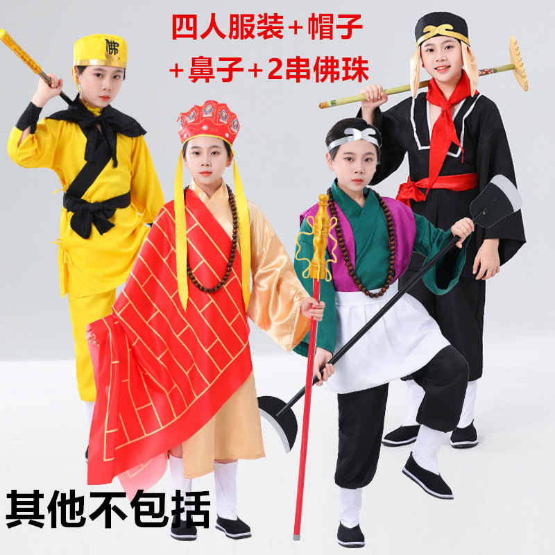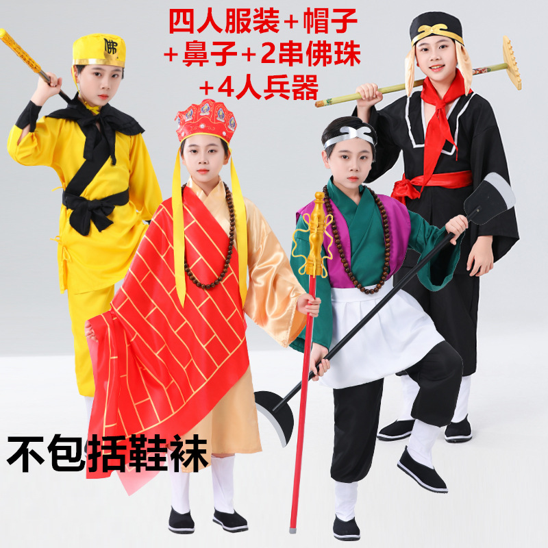 서부 공연 의류 마스터 및 견습생 4 인 롤 플레잉 돼지 원숭이 왕 탕 스님 샤 스님 공연 의류 어린이 여행