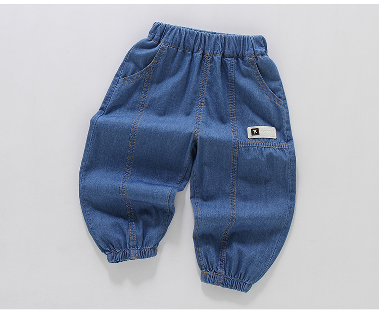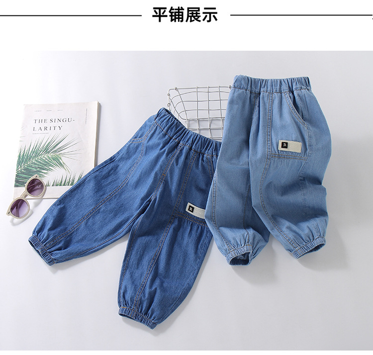 100% 면 소년 청바지 여름 얇은 느슨한 올 매치 바지 어린이 면 유행 바지스토어 가기