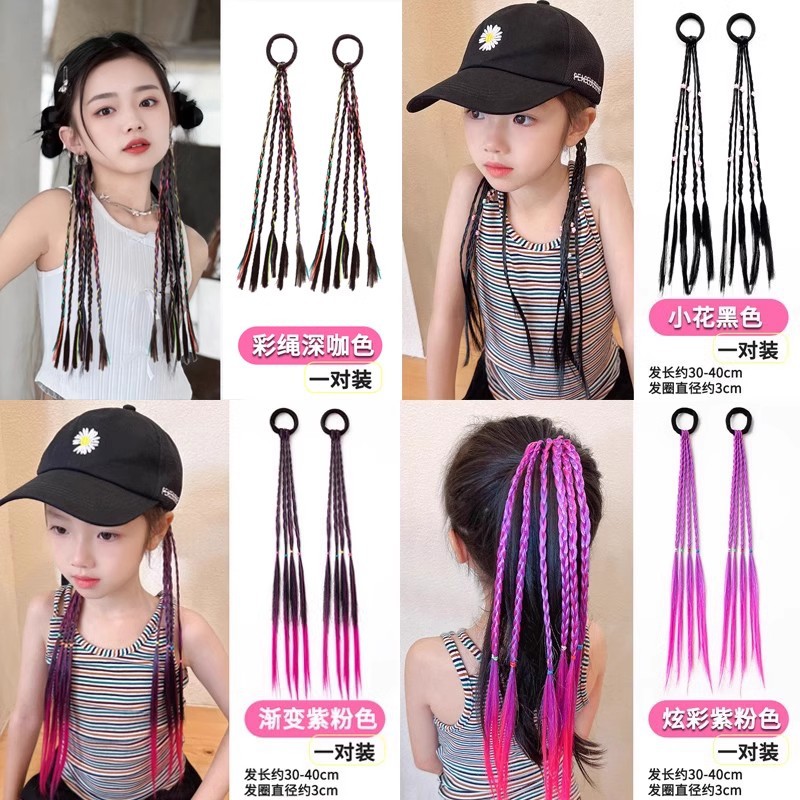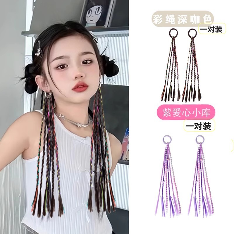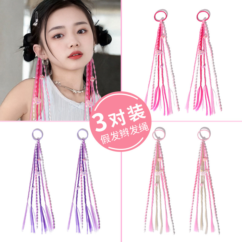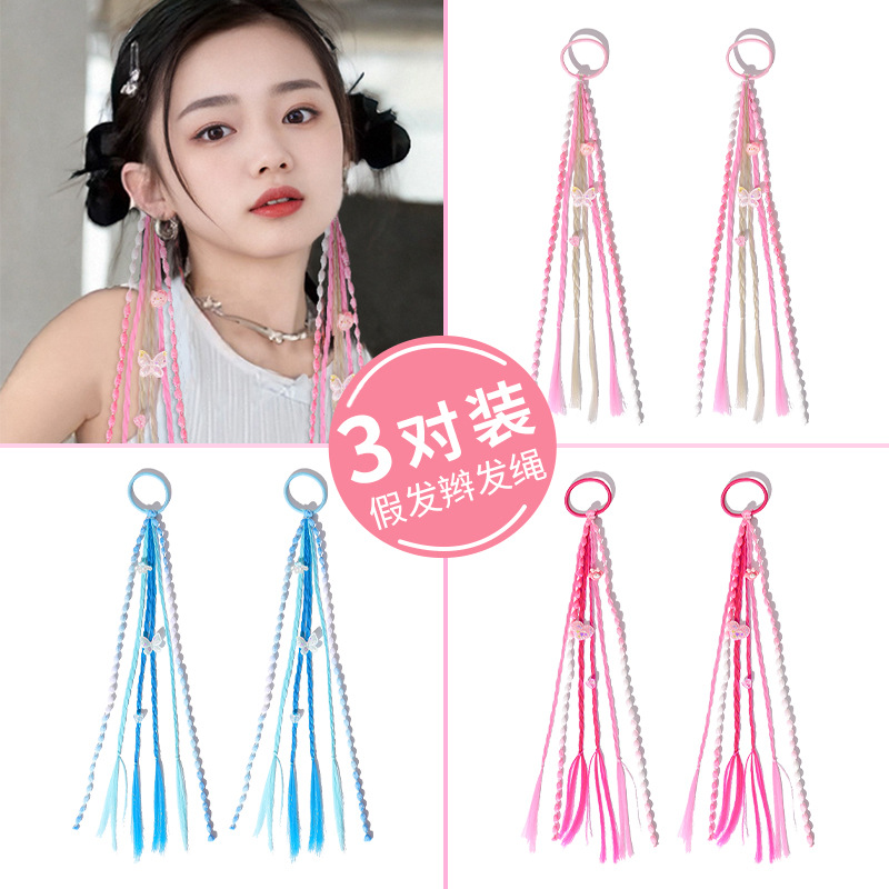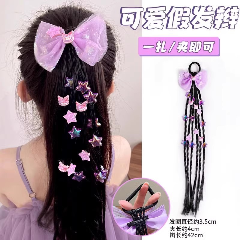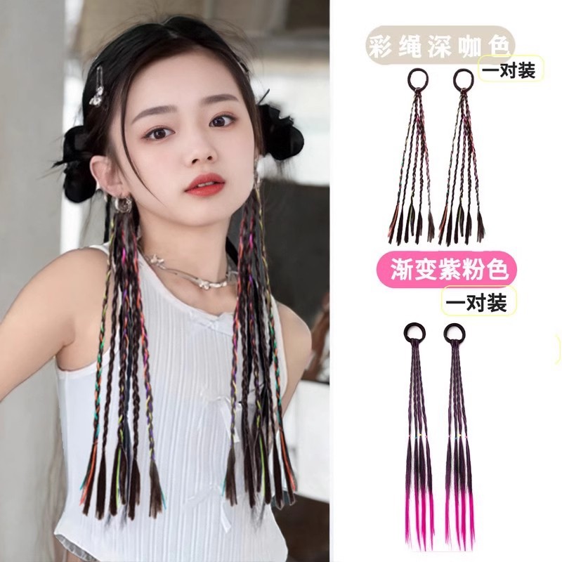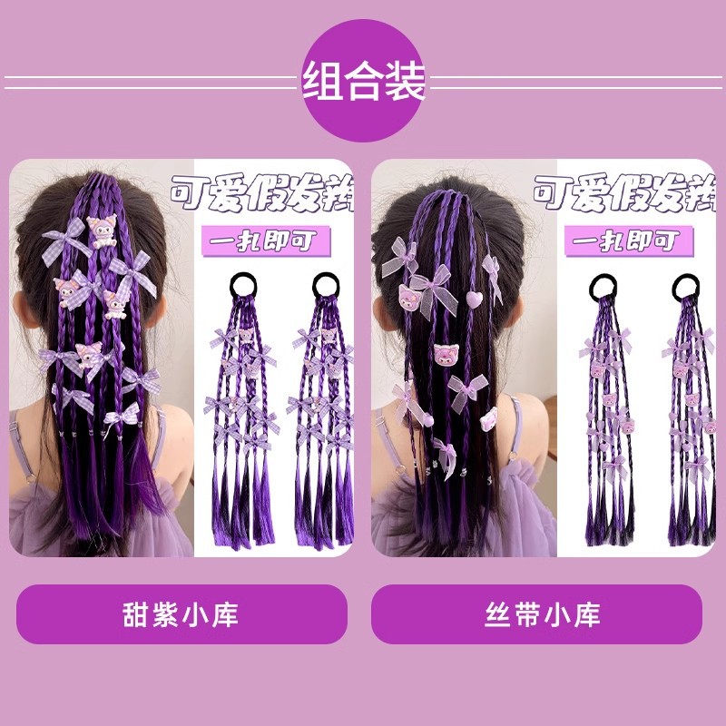 • 연한 보라색 나비 가발 브레이드 헤어 로프 쌍