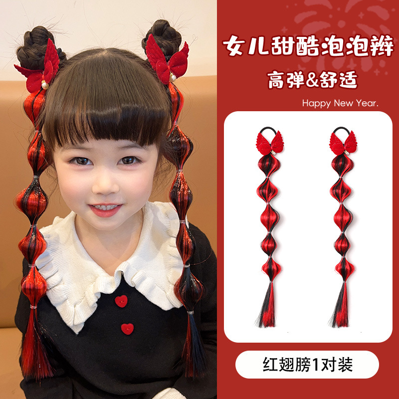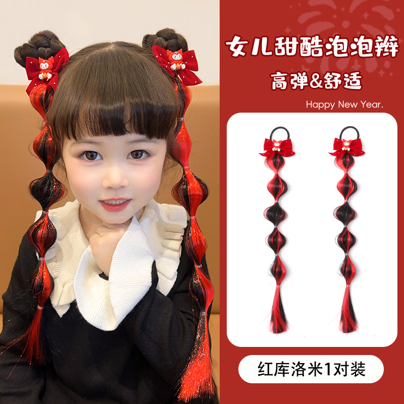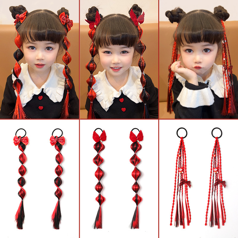 • 5#큰 빨간 활 가발 브레이드 1 쌍