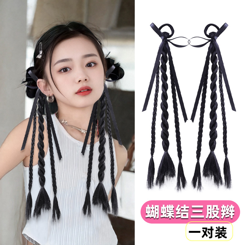 • 나비 Xiaoku 가발 땋은 머리핀 머리끈
