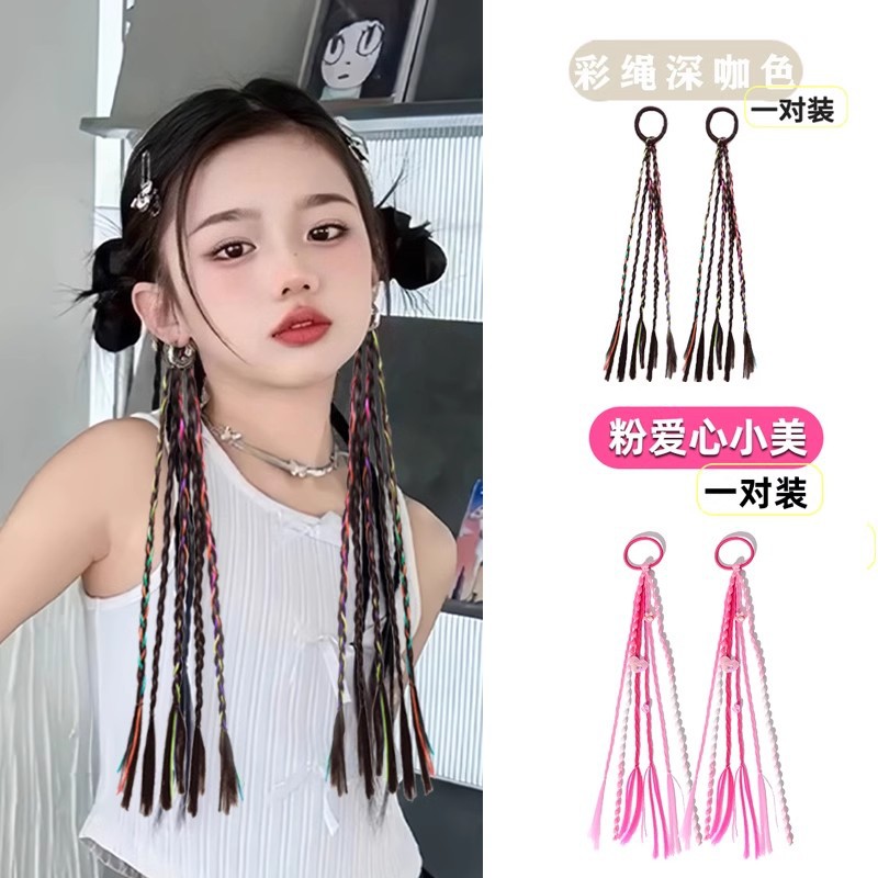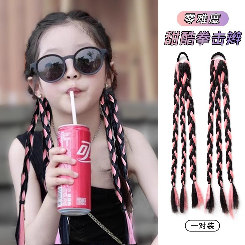 • 핑크색 세 가닥 땋은 머리 한 쌍
