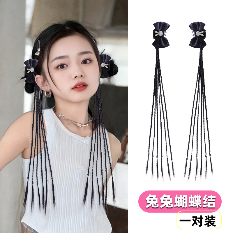 • 4#검은색 활 가발 브레이드 1쌍