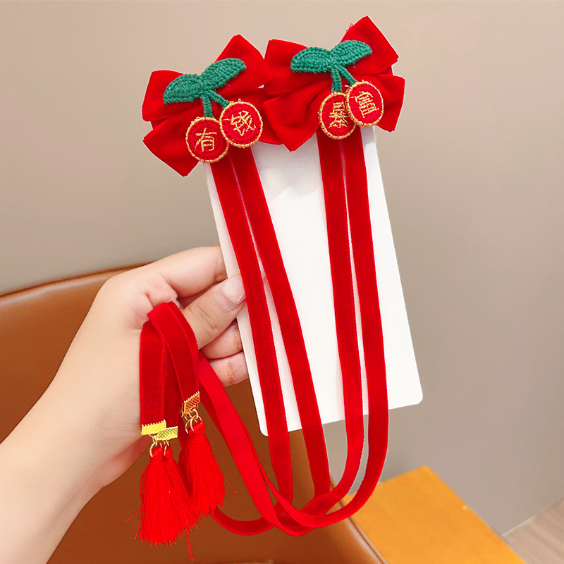 • 4#붉은 리본 머리핀 2개 세트