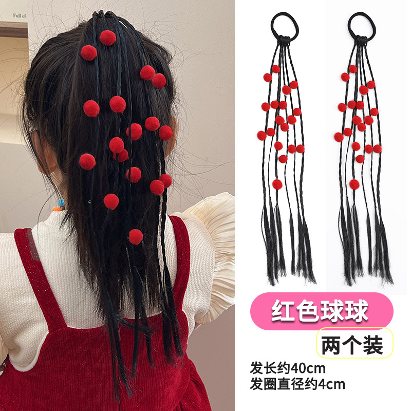 • 9#새해 빨간 공 머리끈 2팩