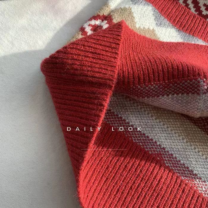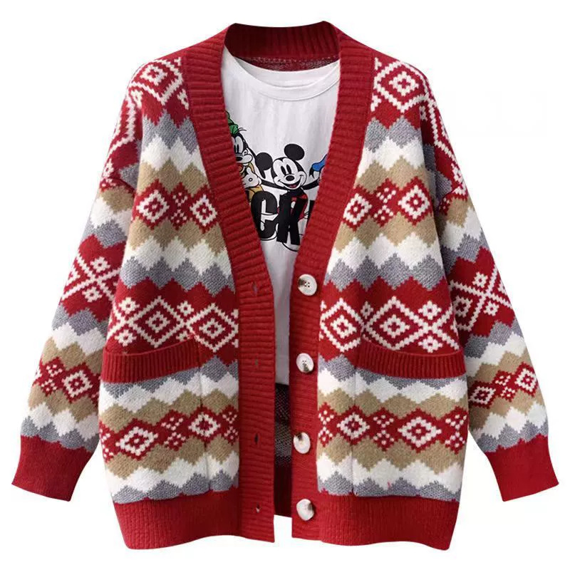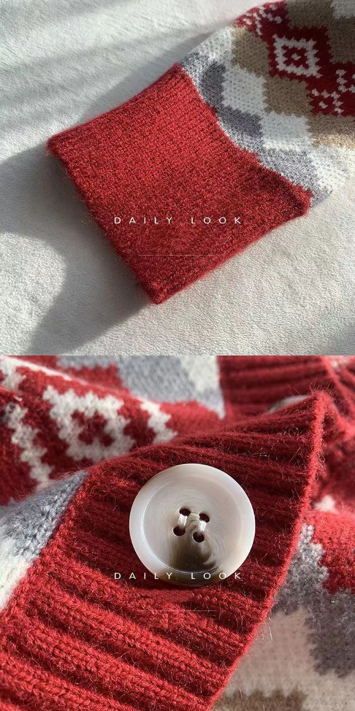 2025년 가을 겨울 신상 유럽 및 미국 의류 스웨터 버튼 니트 가디건 재킷 대비 컬러 자카드 가디건 기질스토어 가기