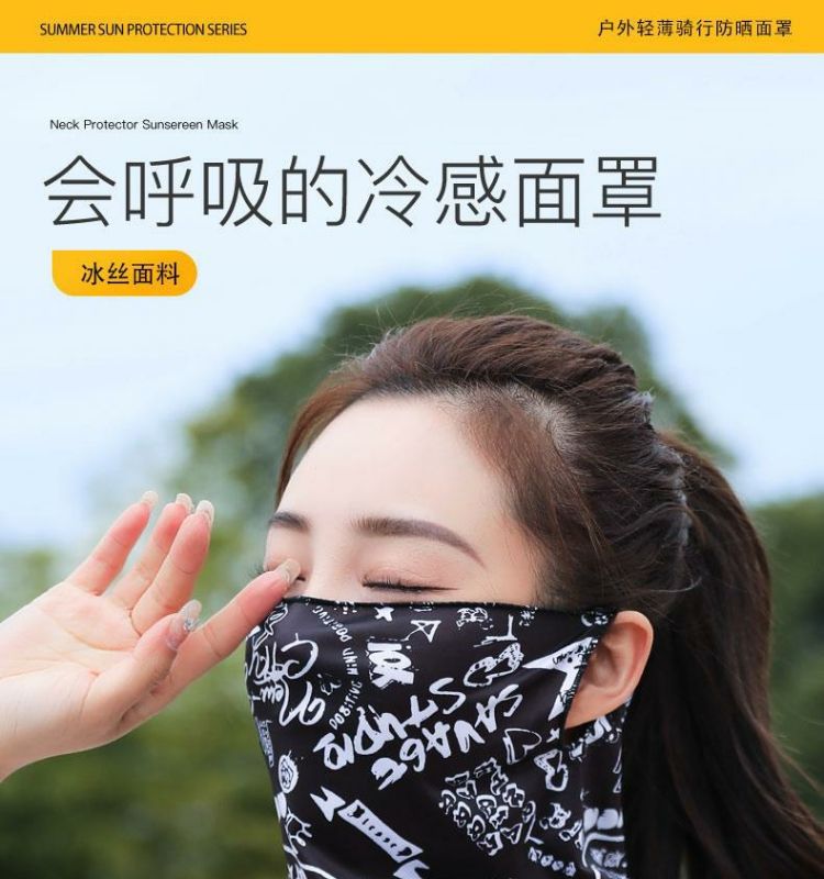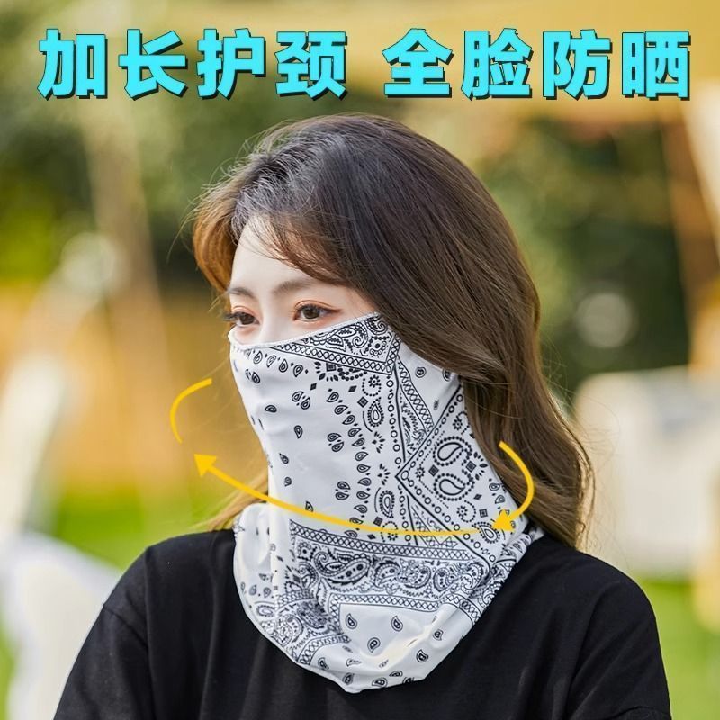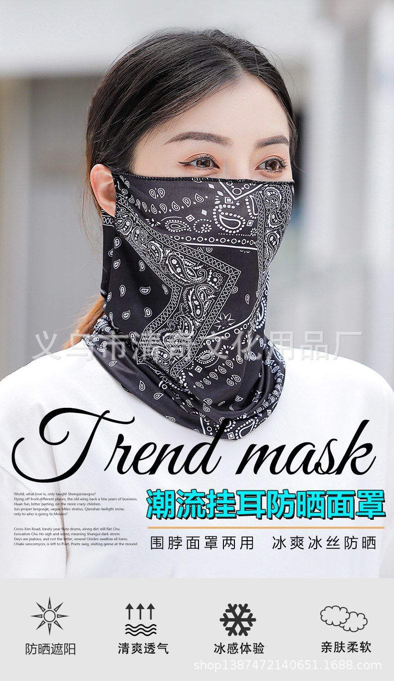 남성과 여성을위한 삼각형 수건 선스크린 얼굴 커버 아이스 실크 귀 교수형 마스크 스포츠 목 보호자 통기성 목 소매 봄과 여름 스카프