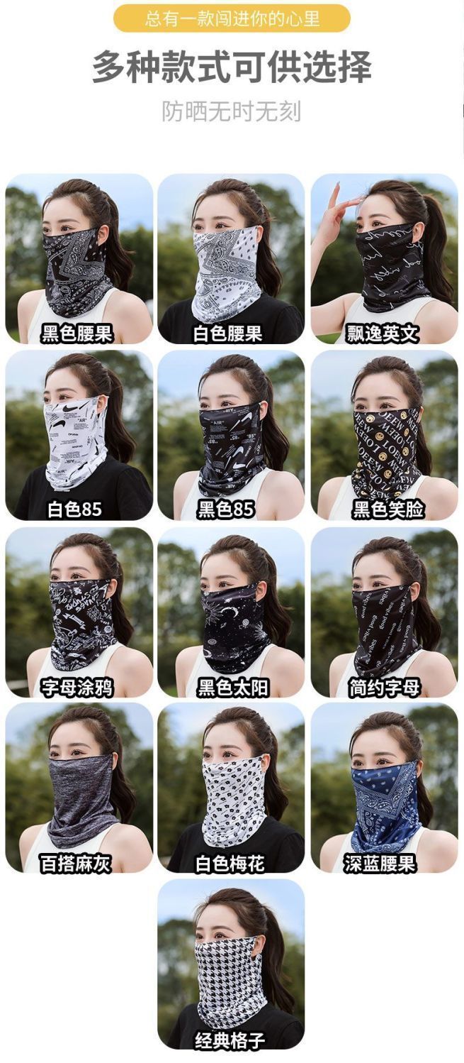 남성과 여성을위한 삼각형 수건 선스크린 얼굴 커버 아이스 실크 귀 교수형 마스크 스포츠 목 보호자 통기성 목 소매 봄과 여름 스카프스토어 가기