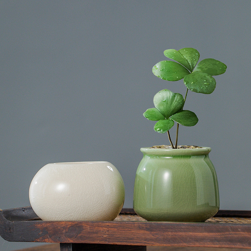 세라믹 가마 오픈 세라믹 수경 작은 화분 비 다공성 꽃 그릇 녹색 식물 컨테이너 작은 신선한 데스크탑 꽃 도매