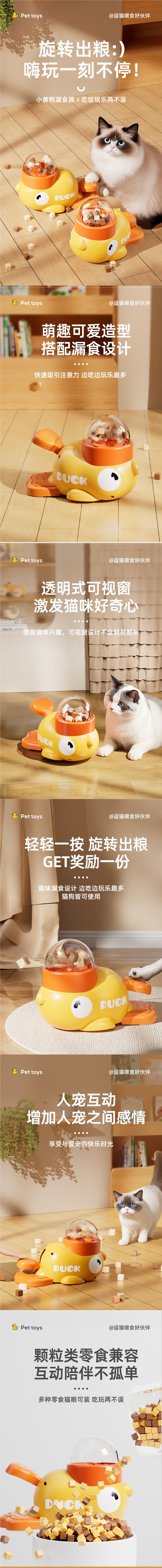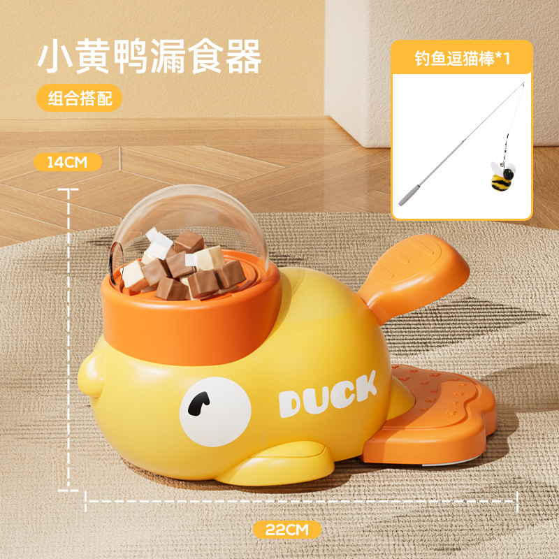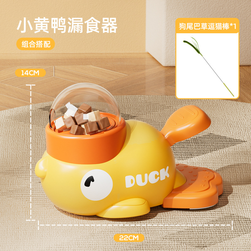 고양이 장난감 셀프 하이, 지루함 고양이 장난감 애완 동물 스낵 동결 건조 노란 오리 런처 새끼 고양이 누출 장난감 개