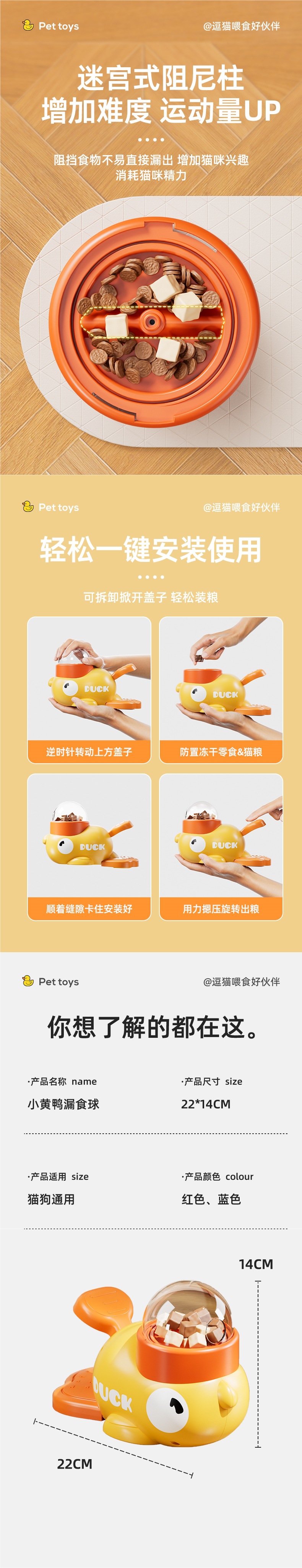 • 작은 노란 오리 애완동물 먹이통 [펠릿 간식, 회전식 음식에 적합]