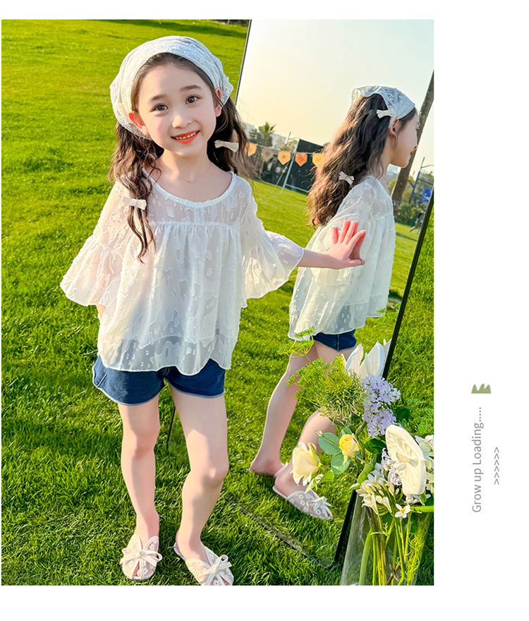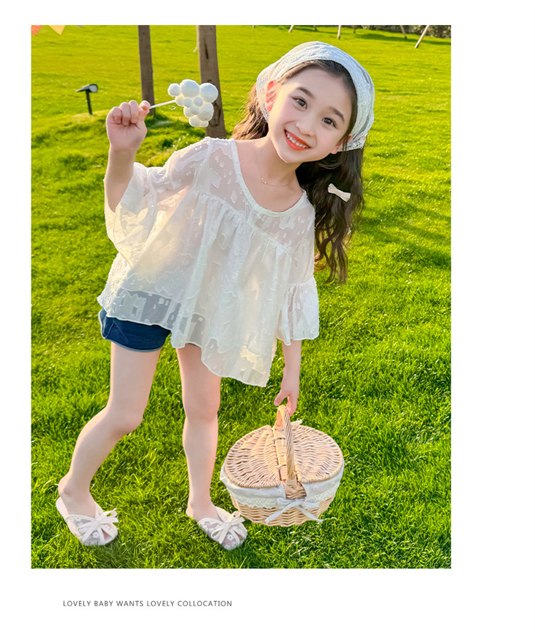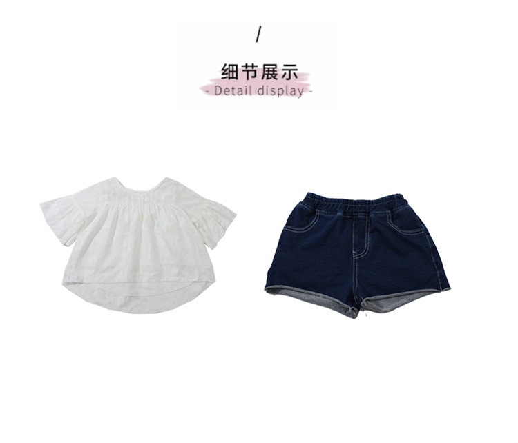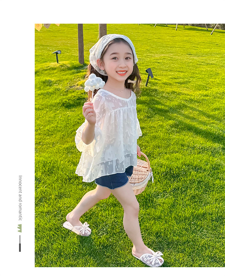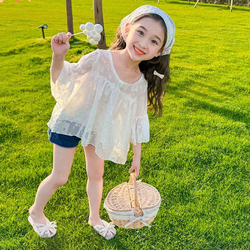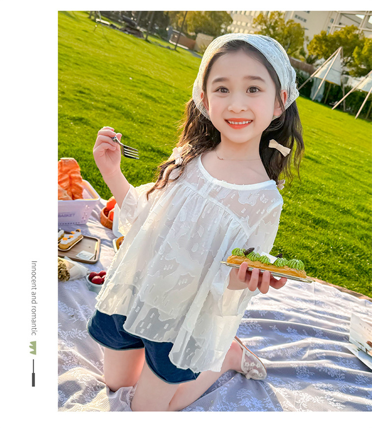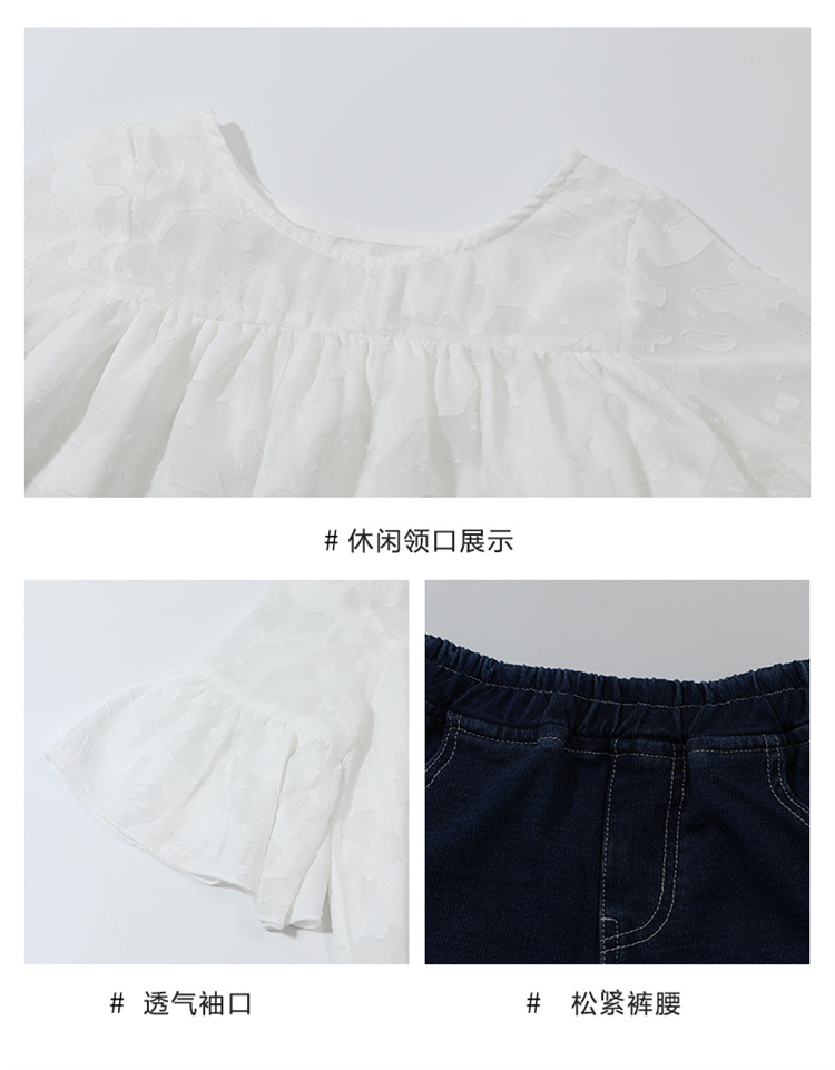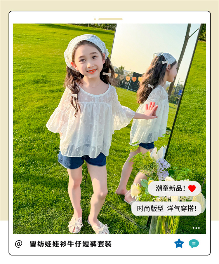 한국 스타일 소녀의 여름 서양식 시폰 인형 셔츠 2025 새로운 아기 소녀 캐주얼 얇은 데님 반바지 세트스토어 가기