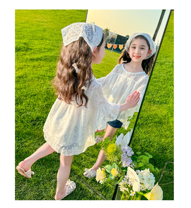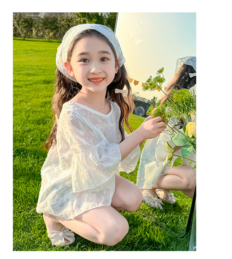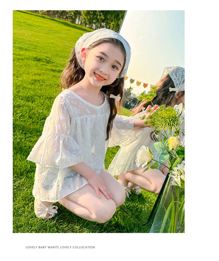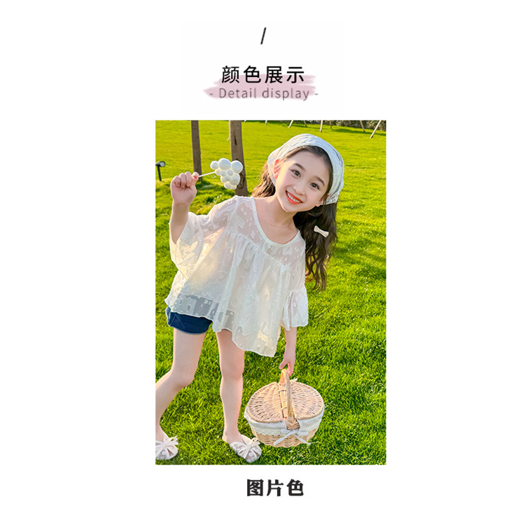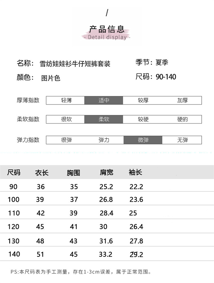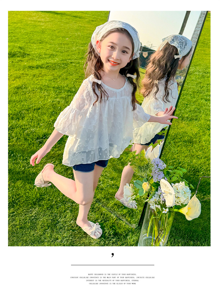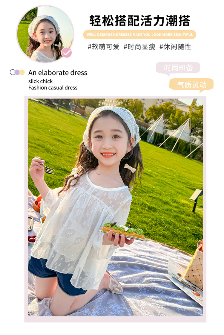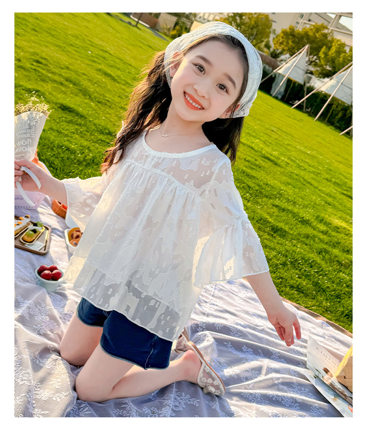 한국 스타일 소녀의 여름 서양식 시폰 인형 셔츠 2025 새로운 아기 소녀 캐주얼 얇은 데님 반바지 세트스토어 가기