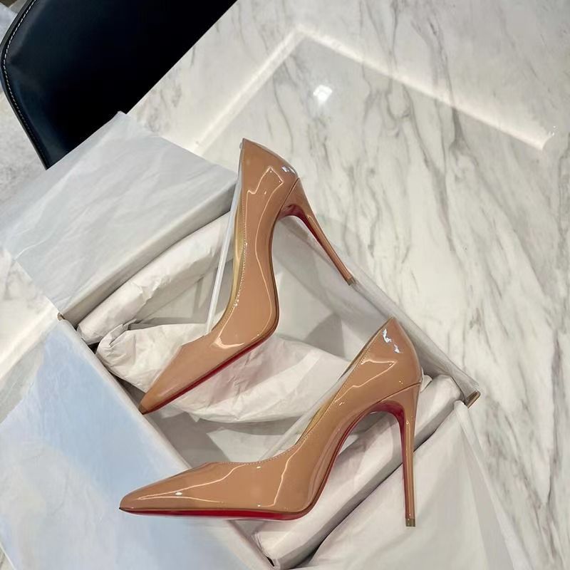 • 살구 싱글 슈즈 9CM 레드 솔