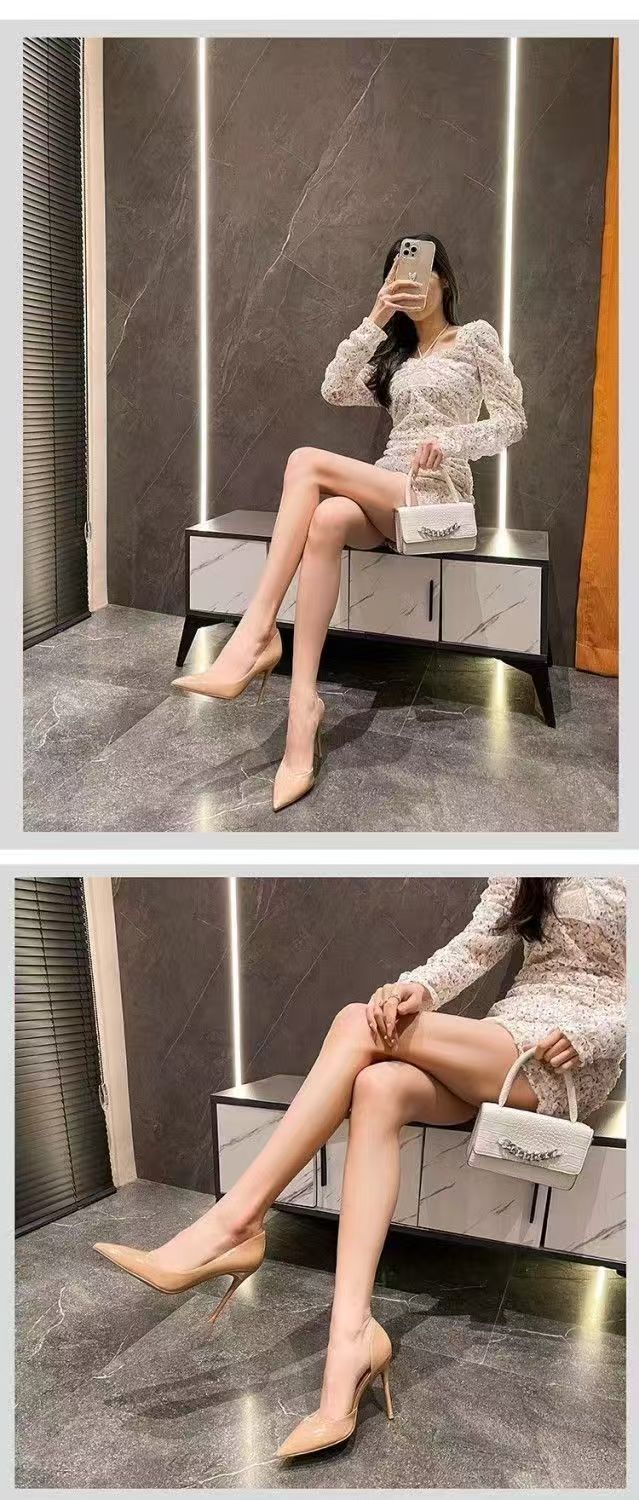 검은 하이힐 여성 2024 년 새 가을 스틸레토 섹시한 틈새 우아한 사교계 포인팅 신발스토어 가기