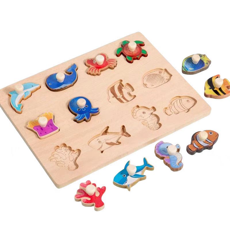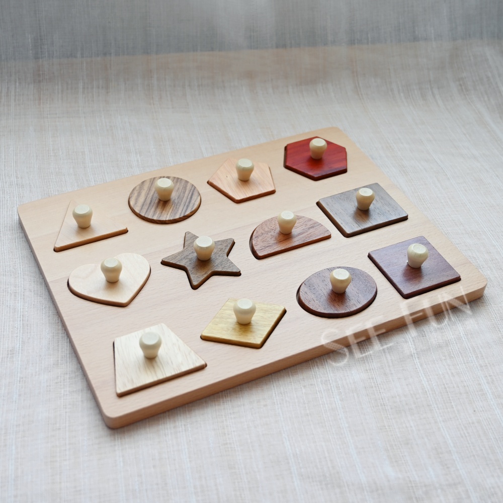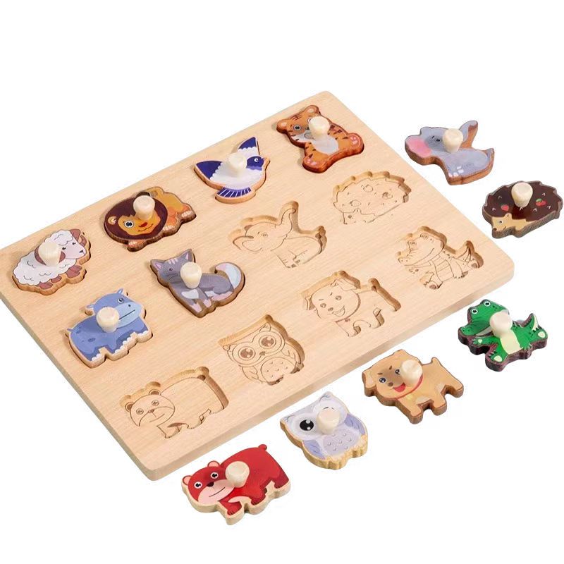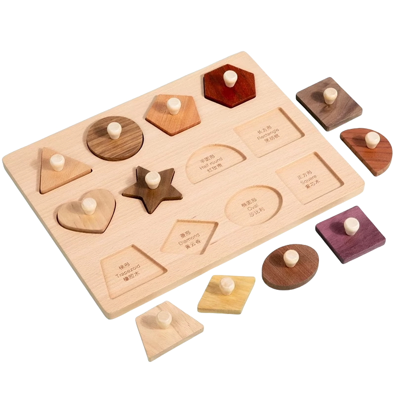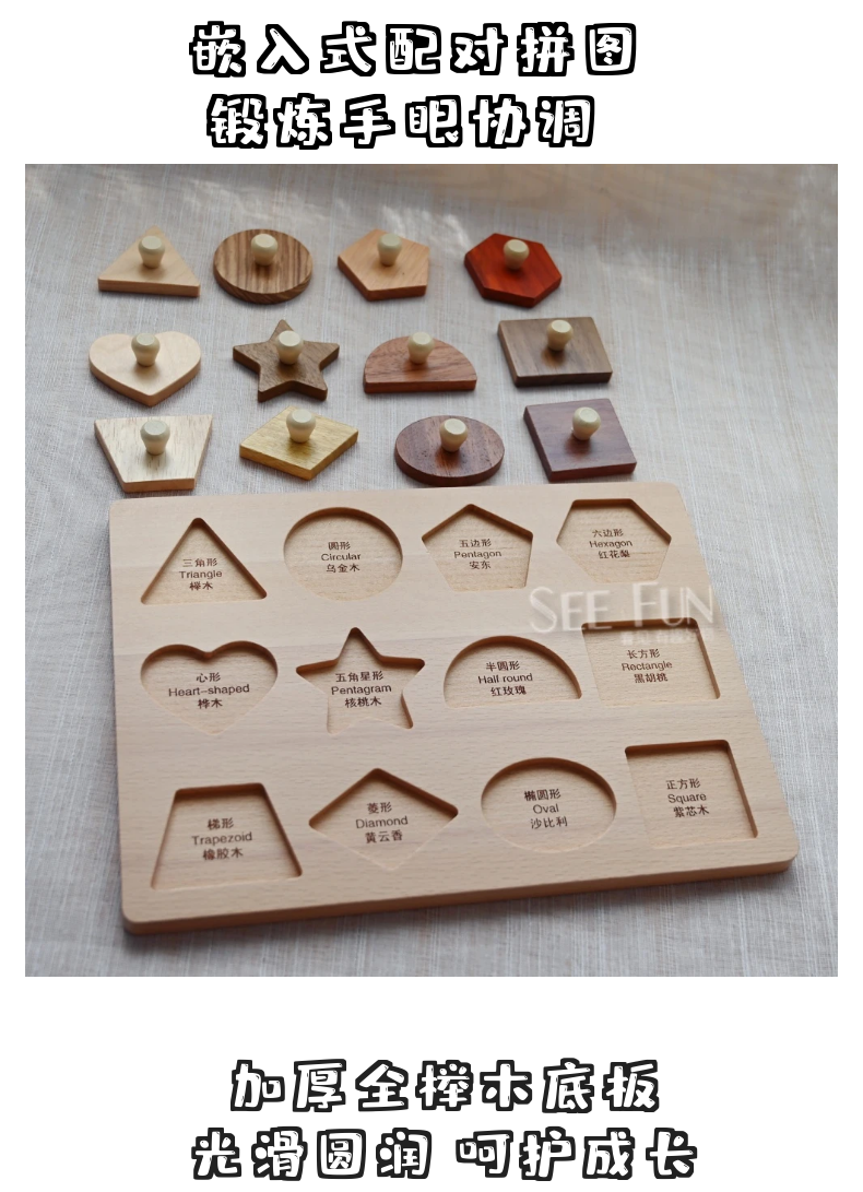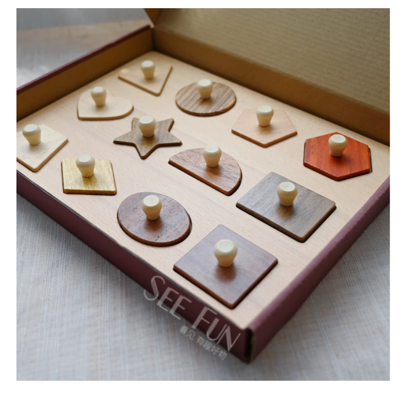 몬테소리 가르치는 원조 휴대용 패널 퍼즐 단단한 나무 조기 교육 아기 모양 일치하는 패널 아기 건물 블록 장난감스토어 가기
