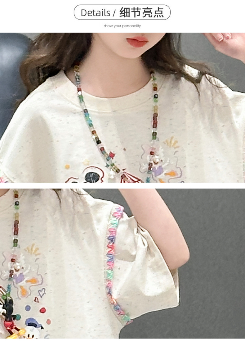 소녀 새로운 도착 반팔 만화 유행 2025 여름 새로운 도착 소녀 티셔츠 만화 귀여운 올매치