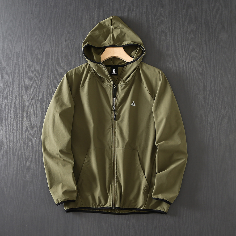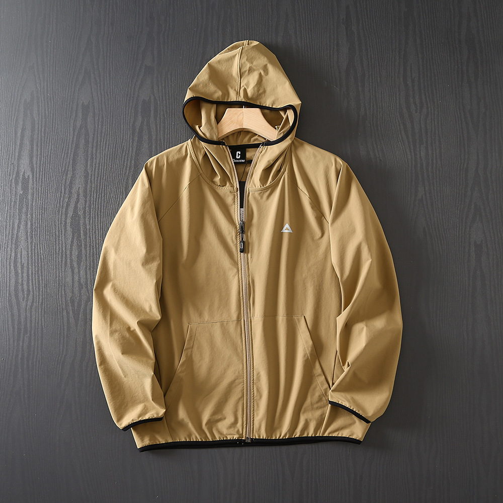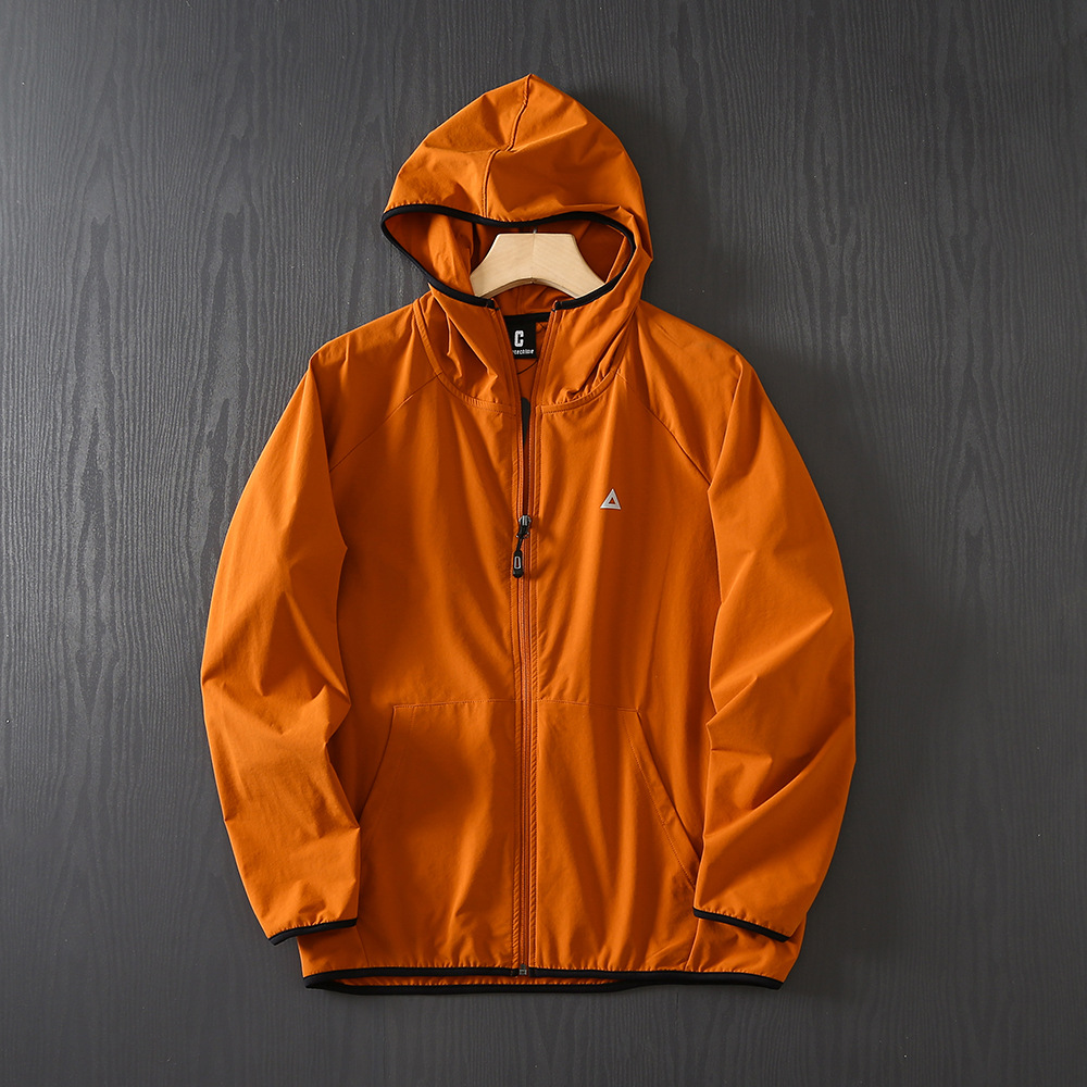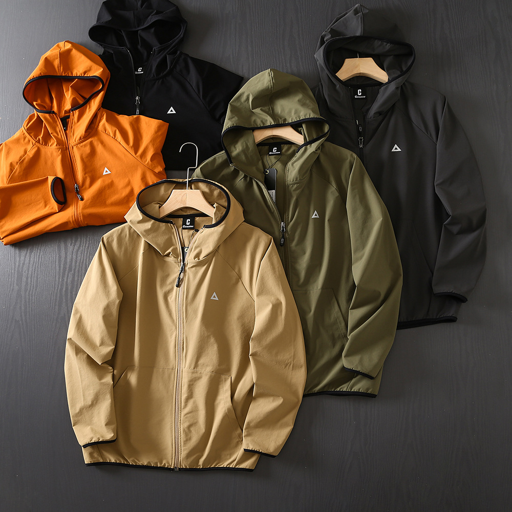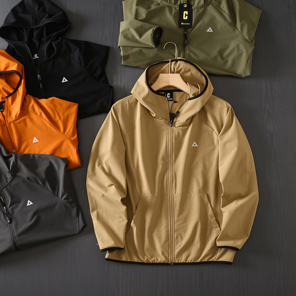야외 새 시리즈! 통기성 튀는 물! 봄과 여름 남성 야외 자외선 차단제 후드 얇은 재킷 스킨 코트