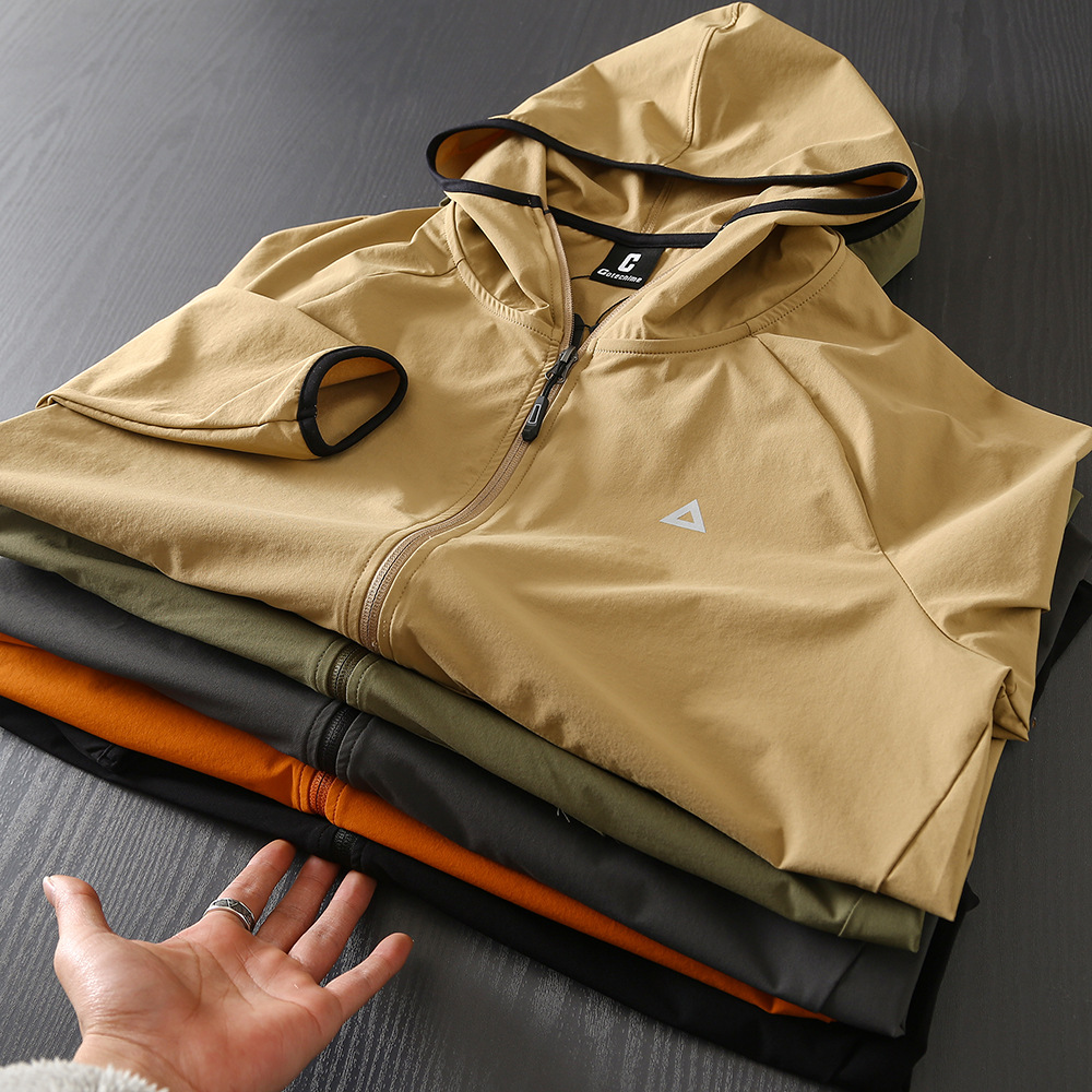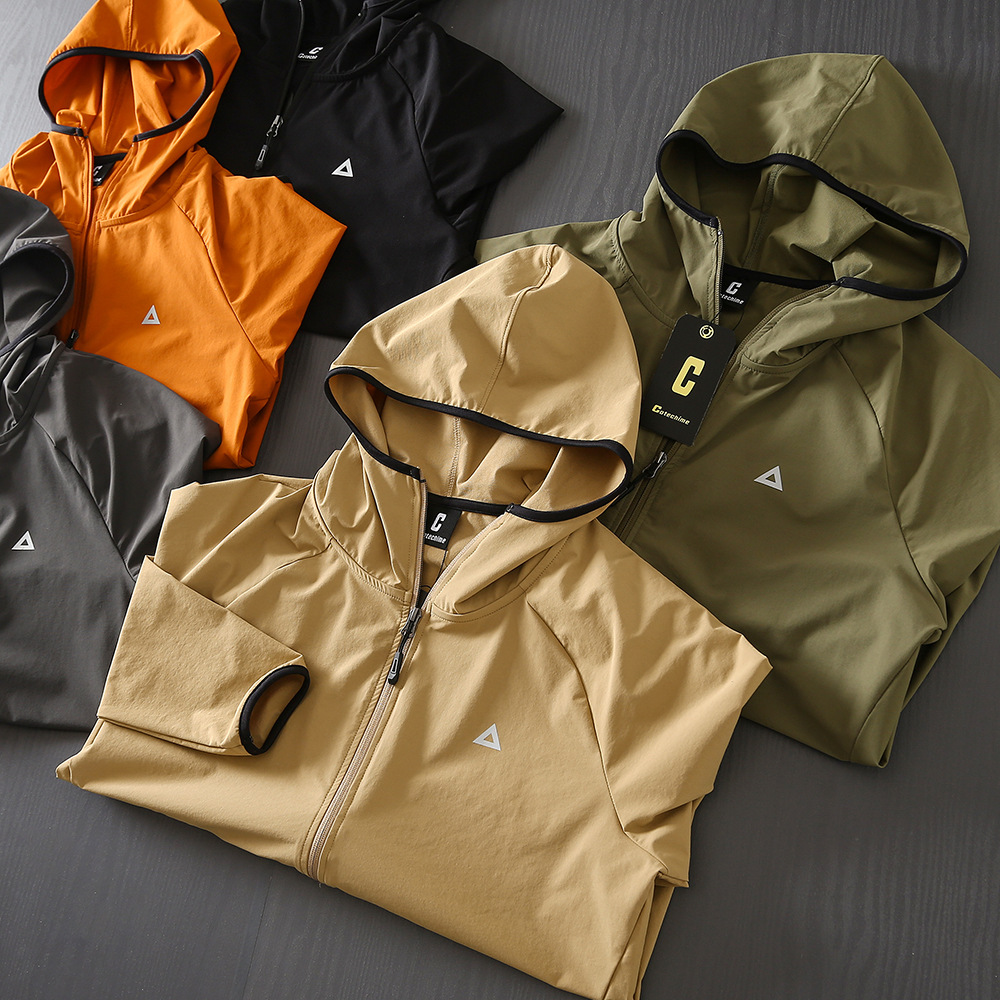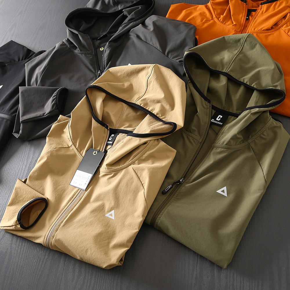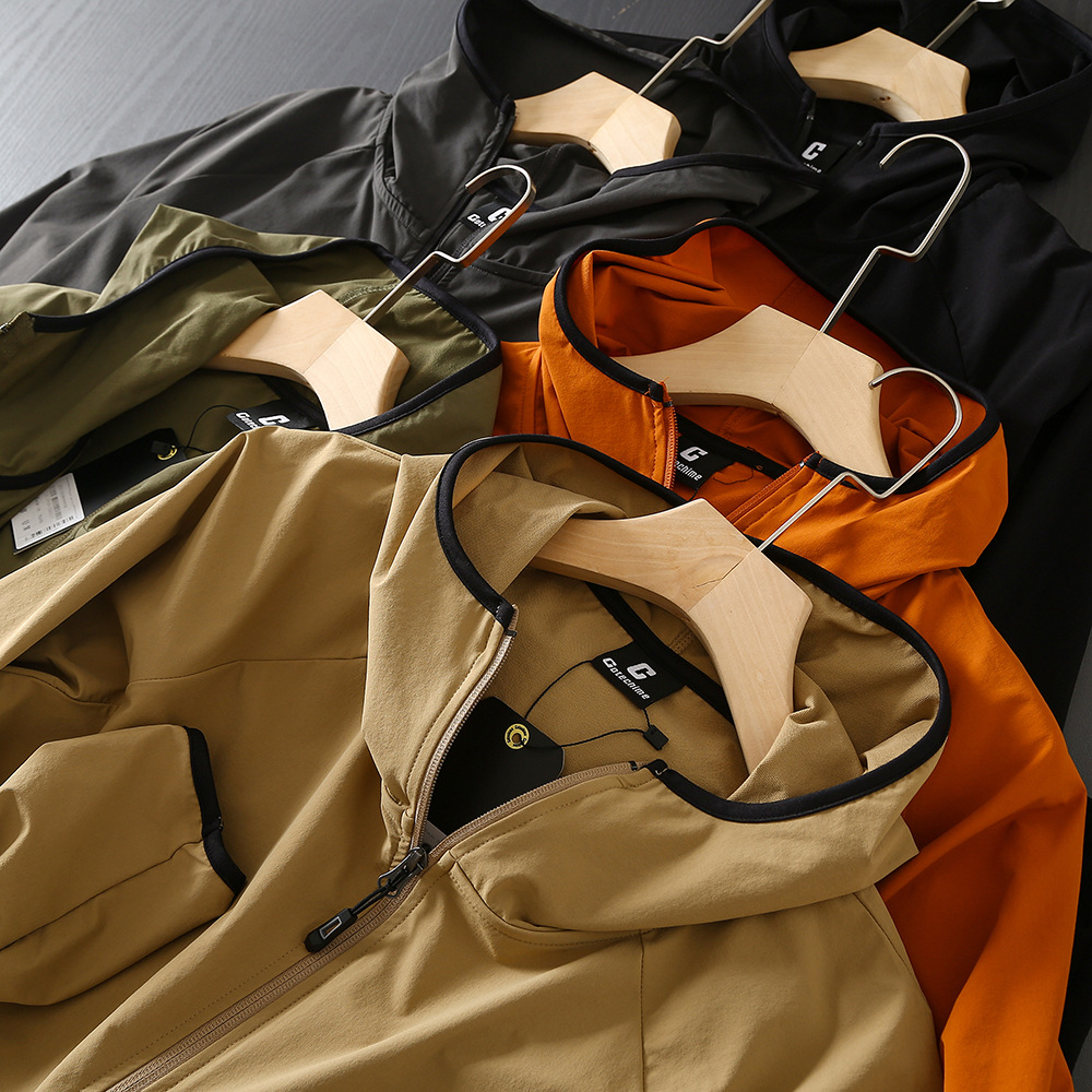 야외 새 시리즈! 통기성 튀는 물! 봄과 여름 남성 야외 자외선 차단제 후드 얇은 재킷 스킨 코트스토어 가기