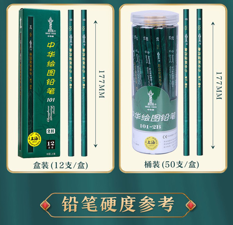 중국 연필 101 시리즈 HB/H/2H/3H/6H/B/2B/3B/4B/5B/6B/8B 중국 브랜드 학생 펜스토어 가기