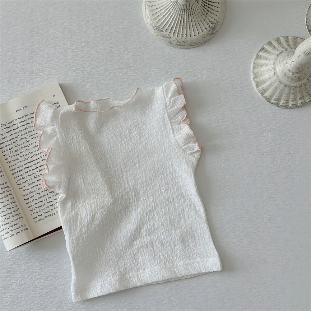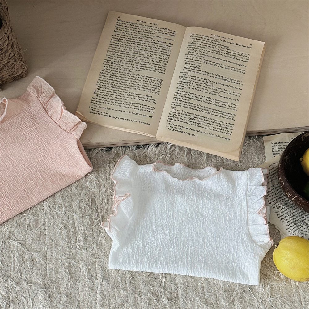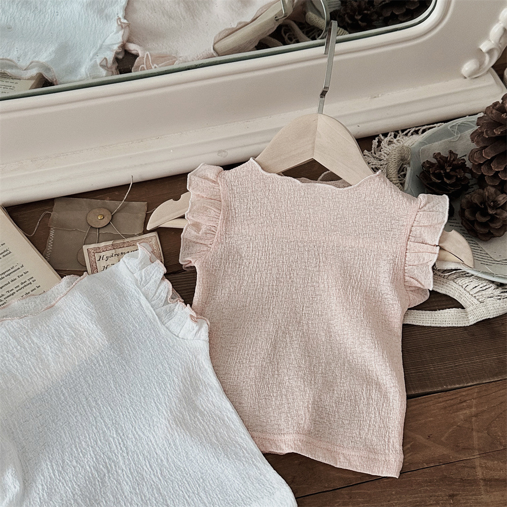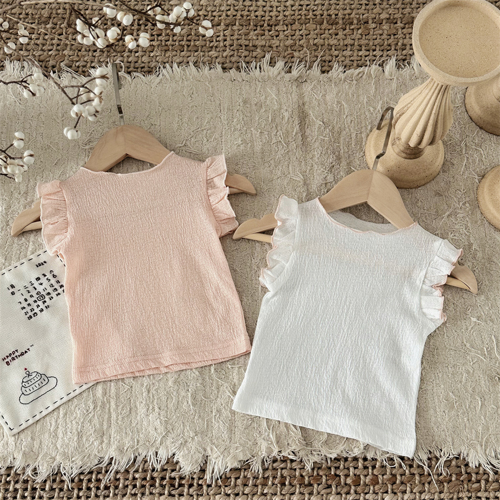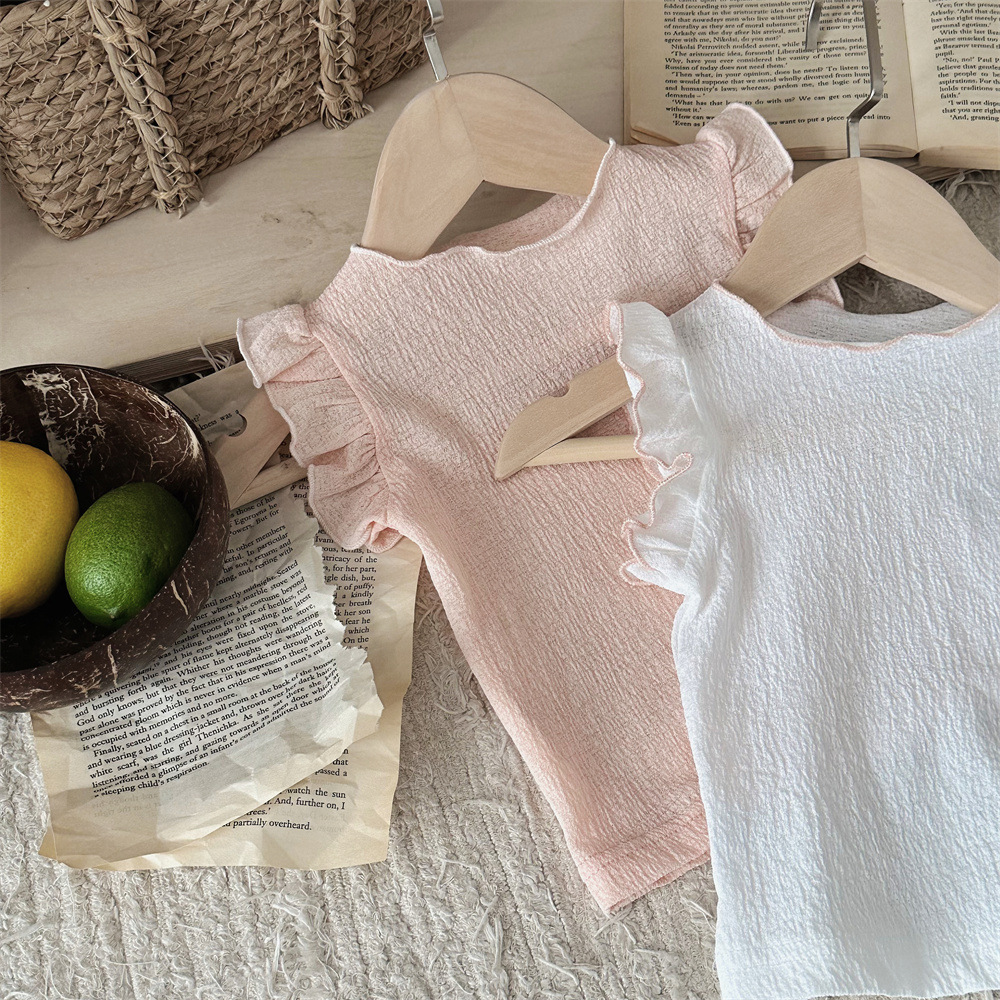 INS 여름 아기 소녀 아기 솔리드 컬러 통기성 Feifei 반팔 티셔츠 걸스 풀오버 탑베이스 셔츠