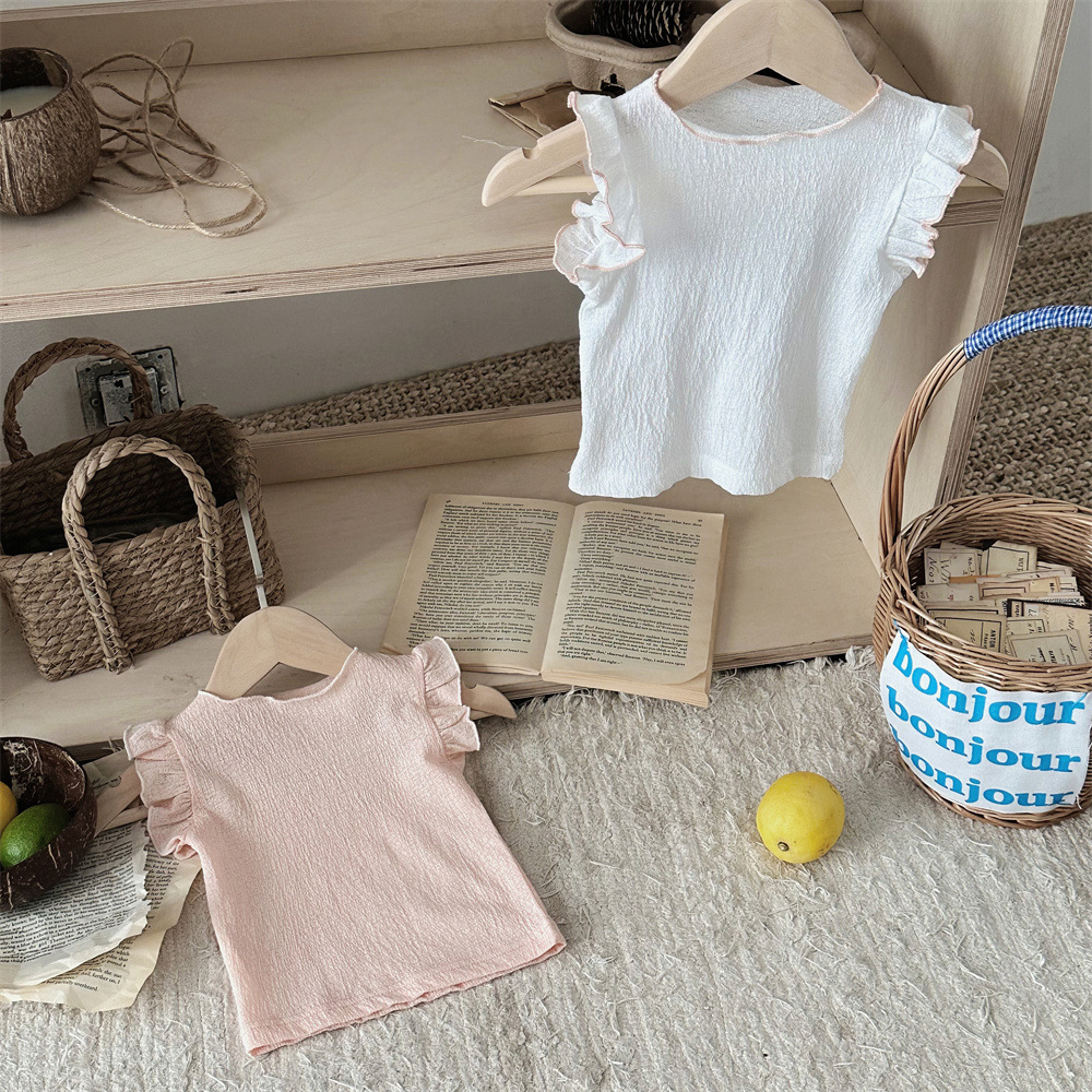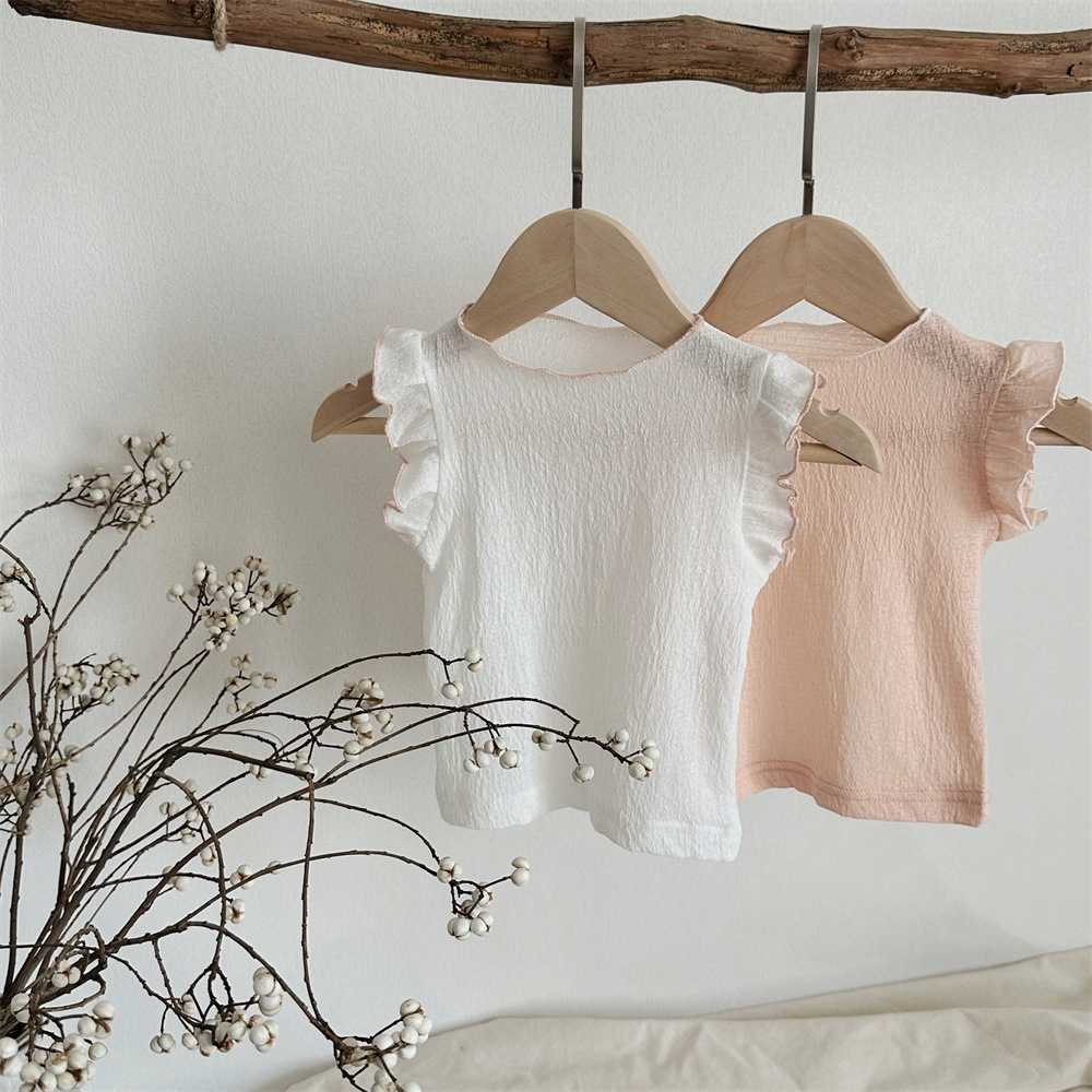 INS 여름 아기 소녀 아기 솔리드 컬러 통기성 Feifei 반팔 티셔츠 걸스 풀오버 탑베이스 셔츠스토어 가기
