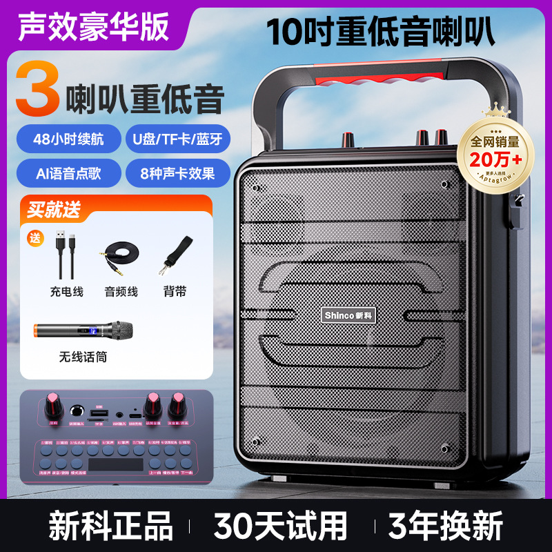 Xinke 블루투스 오디오 야외 대형 볼륨 K-노래 휴대용 스퀘어 댄스 작은 스피커 무거운 서브 우퍼 무선 마이크스토어 가기