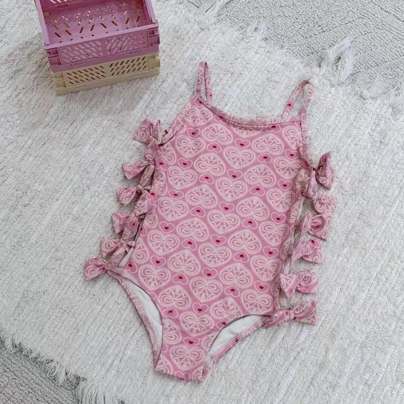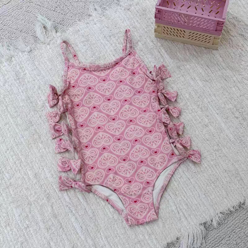2025 여름 여자아이 원피스 수영복 아기 리본 수영복 어린이 온천 수영복 비키니 작은 공주