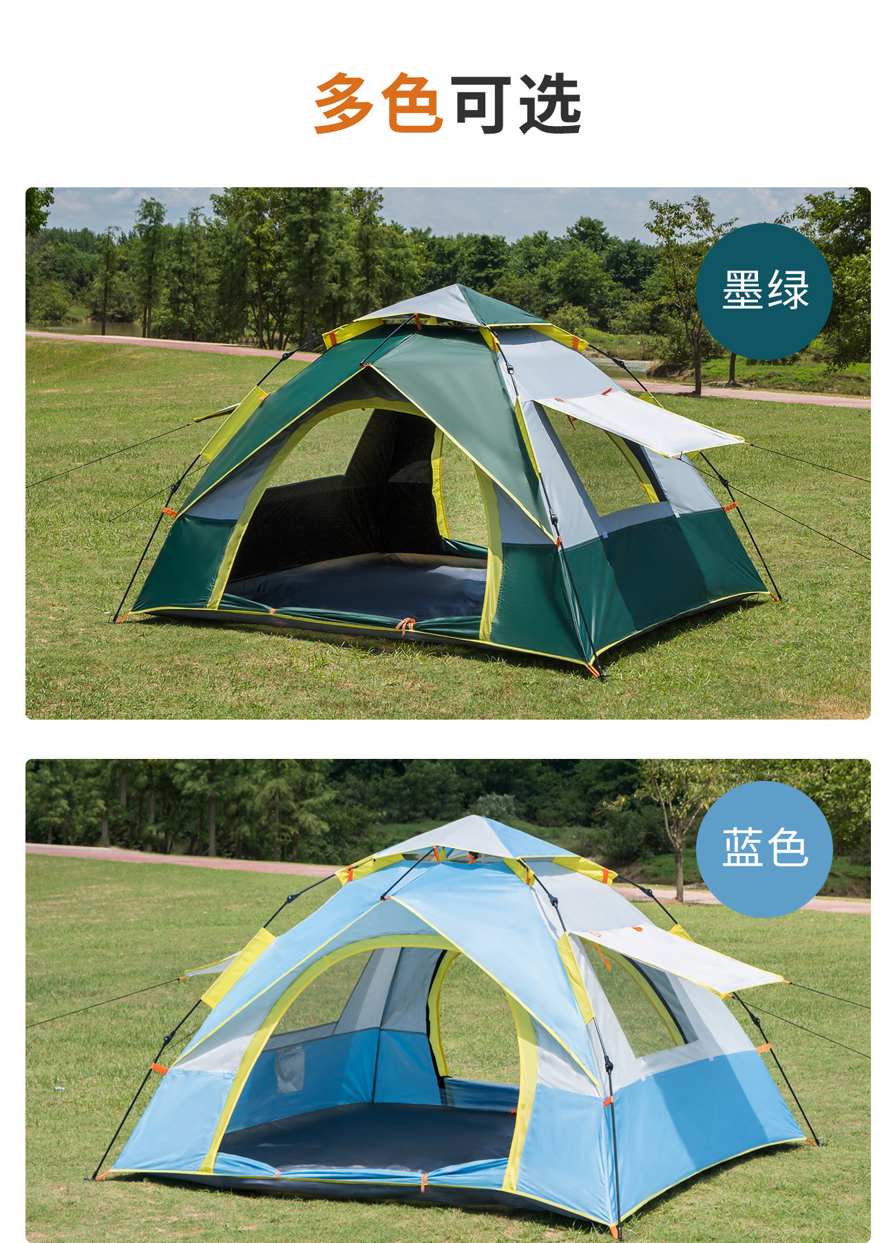 야외 텐트 캠핑 자동 빠른 오프닝 텐트 더블 비치 캠핑 휴대용 텐트 두 문과 두 개의 창