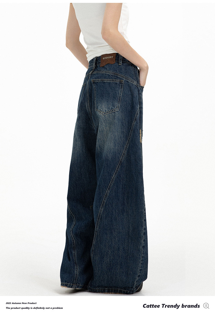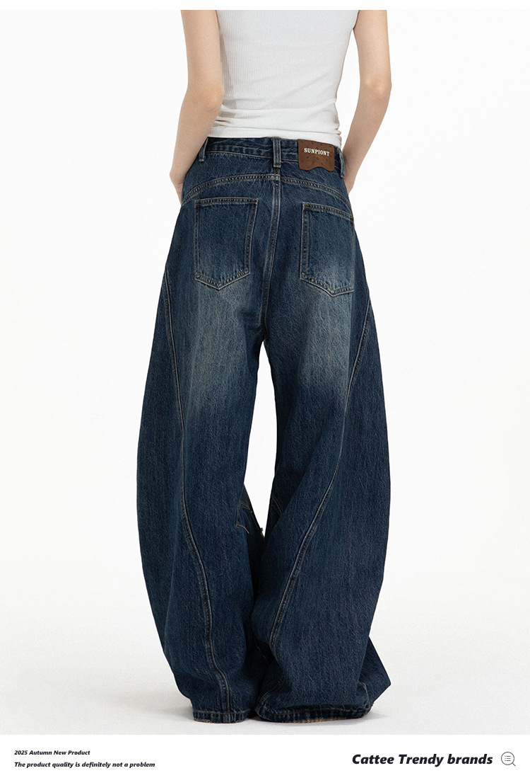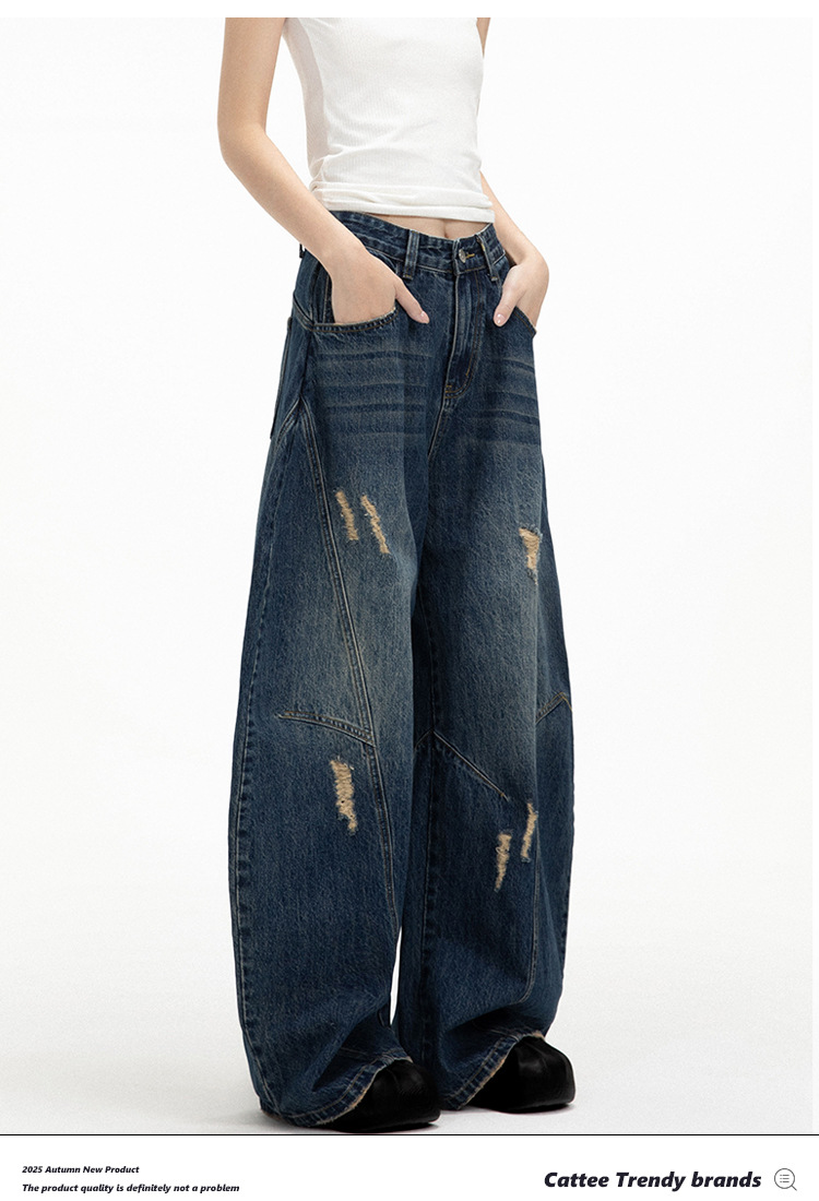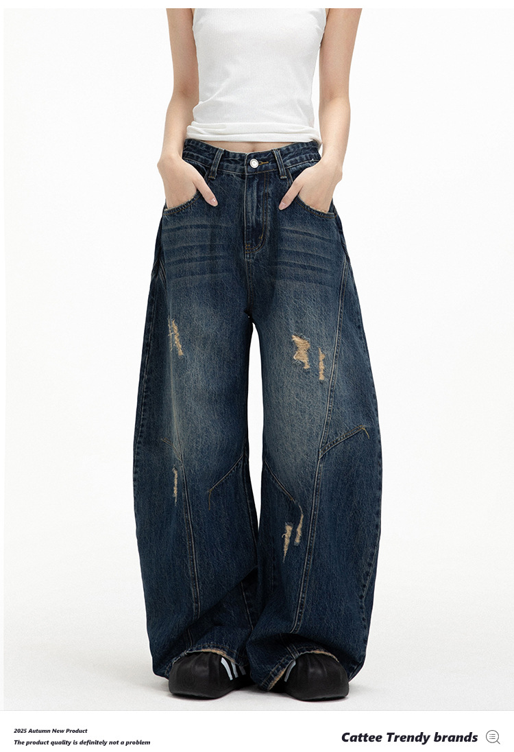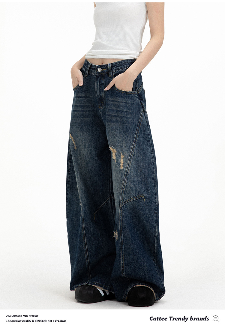 CATTEE 남성 아메리칸 스타일 빈티지 와이드 레그 청바지 남성과 여성의 봄과 가을 새로운 유행 브랜드 느슨한 캐주얼 바지