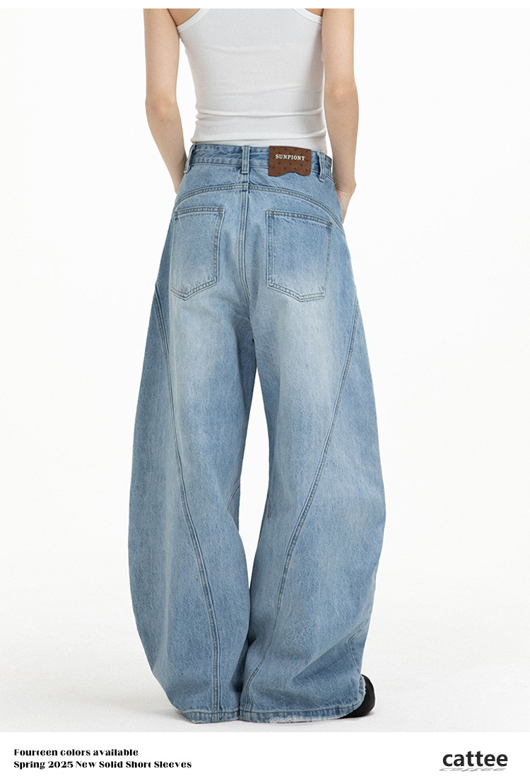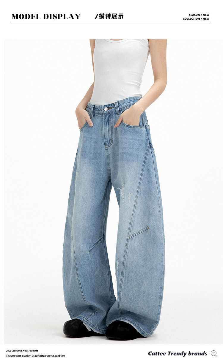 CATTEE 남성 아메리칸 스타일 빈티지 와이드 레그 청바지 남성과 여성의 봄과 가을 새로운 유행 브랜드 느슨한 캐주얼 바지스토어 가기