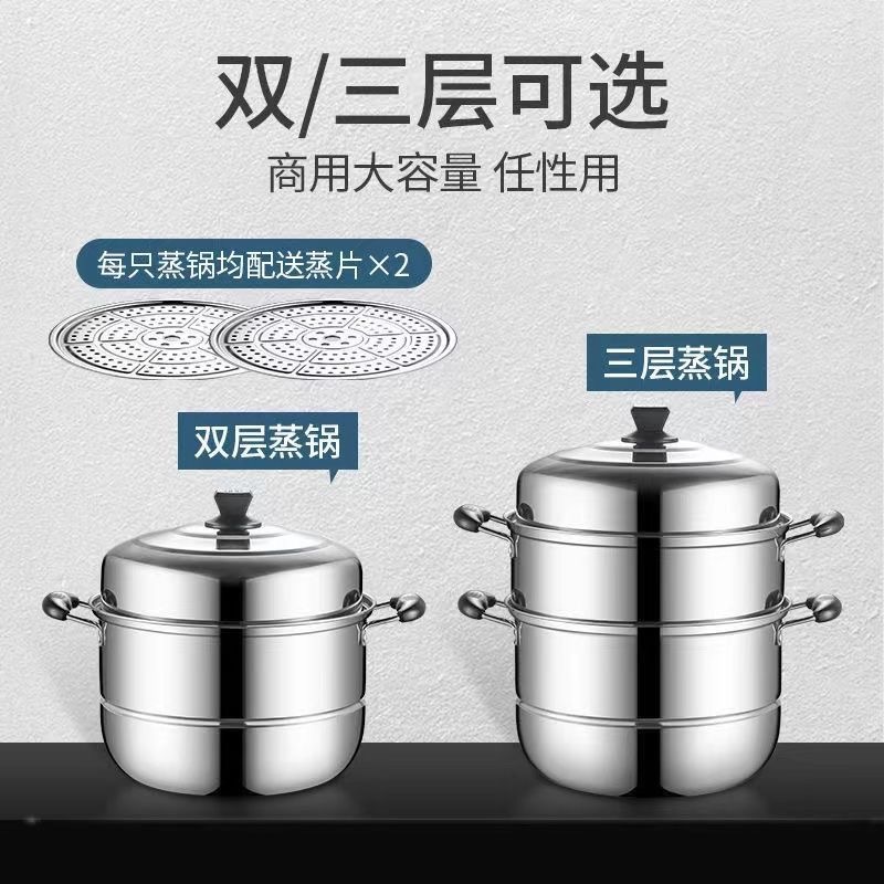 기선 스테인레스 스틸 3 층 두꺼운 대형 기선 찜 빵 가정용 가스 스토브 용 소형 1 이중 2 층 유도 쿠커스토어 가기