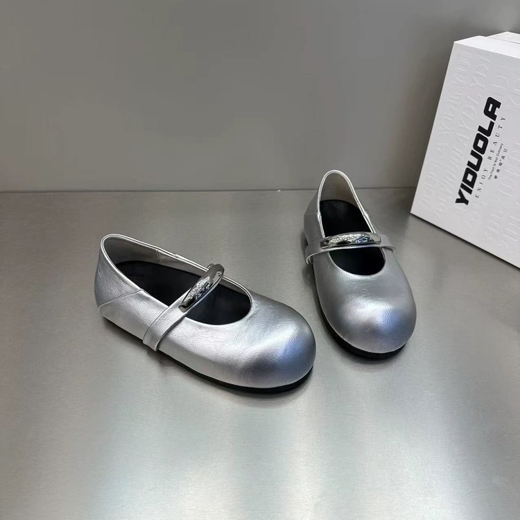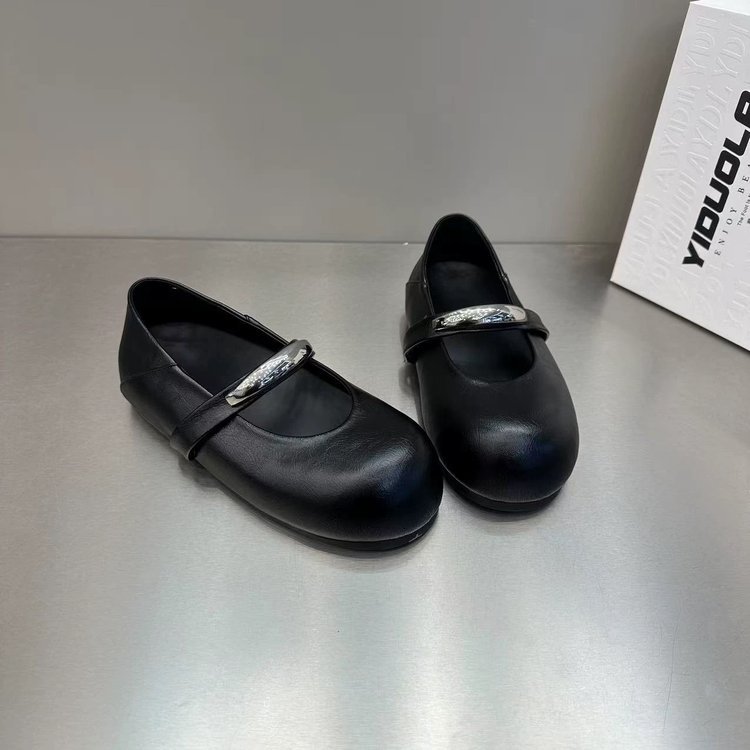 부드러운 가죽 버전 ~ 레트로 둥근 머리 금속 슬리퍼 메리 제인 여성 신발 플랫 신발 기질 얕은 입 슬립 온 신발스토어 가기