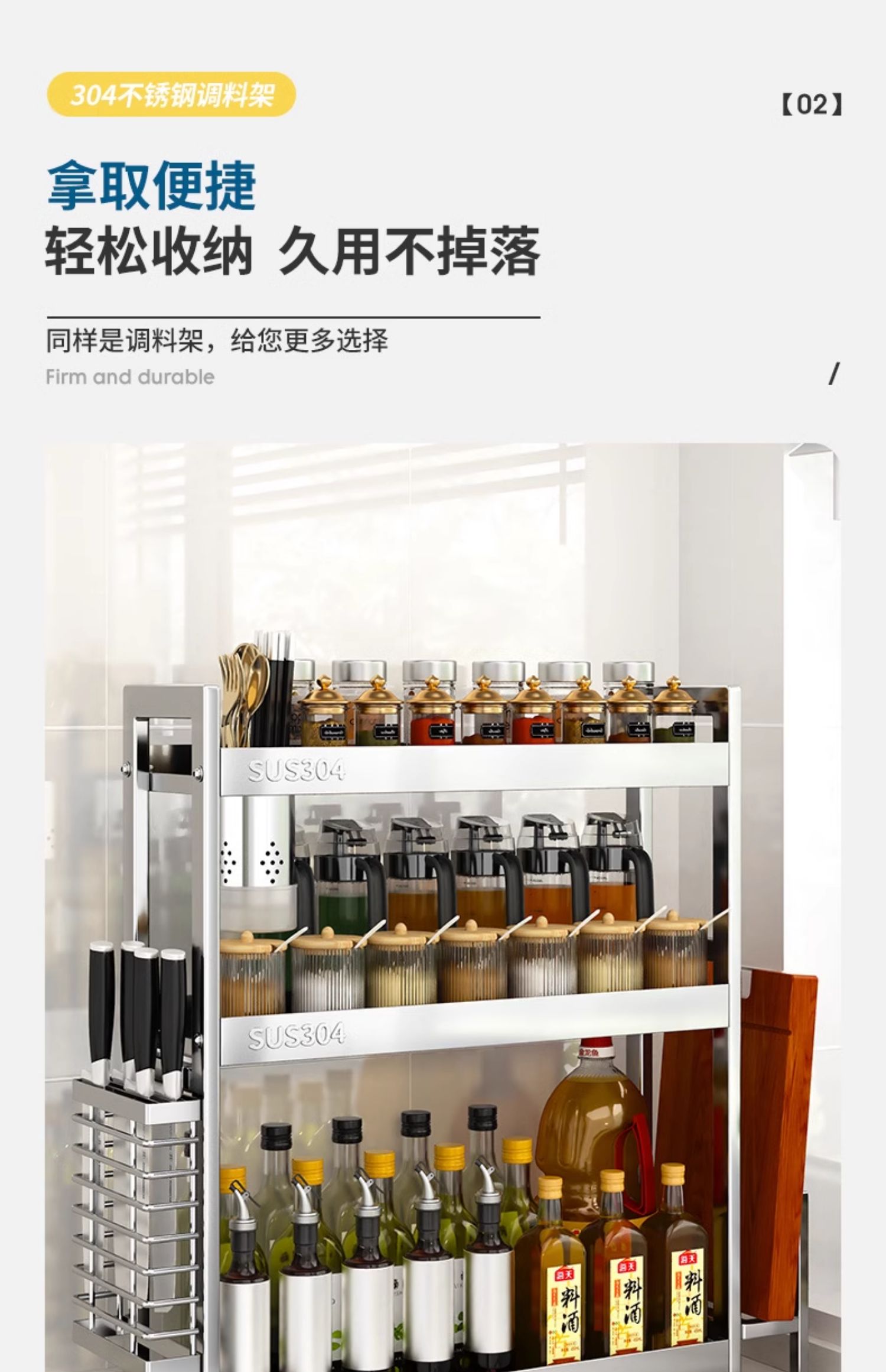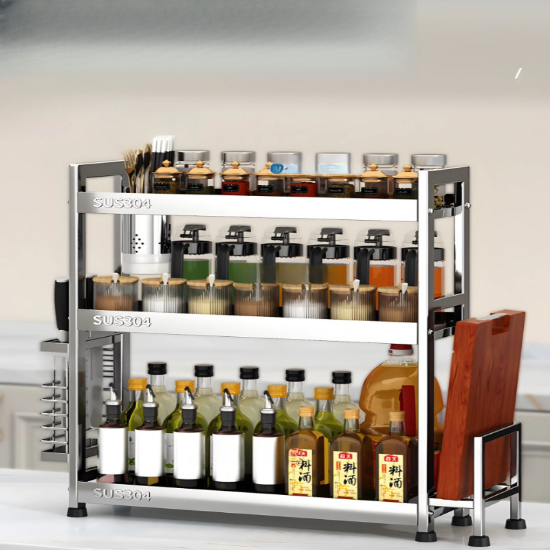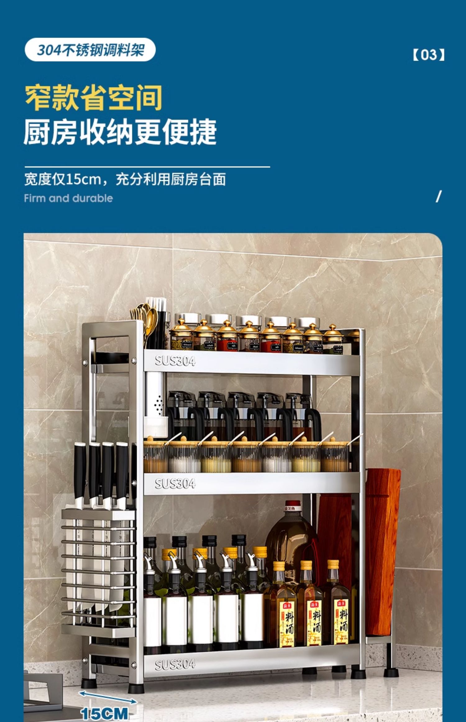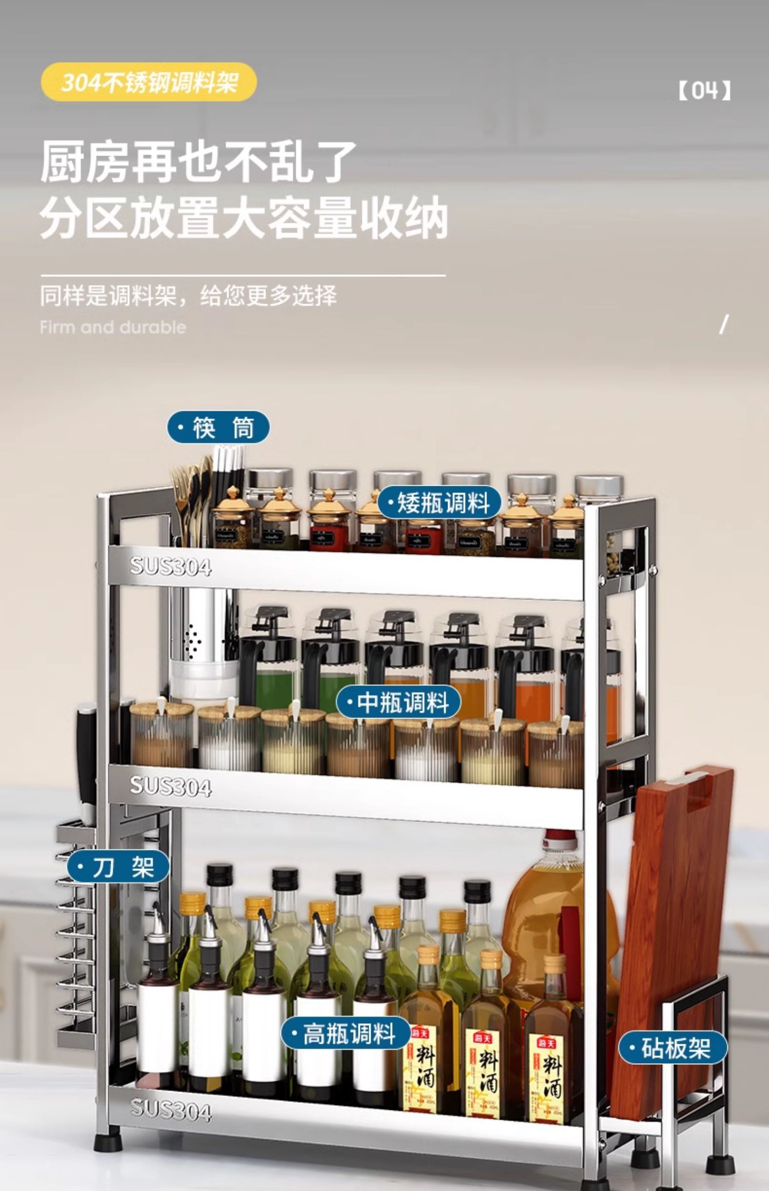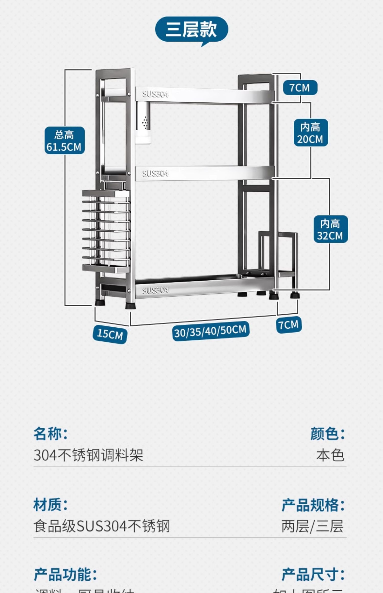 304 스테인레스 스틸 주방 조미료 보관 랙 카운터 탑 간장 양념 오일 소금 소스 식초 조미료 보관 랙