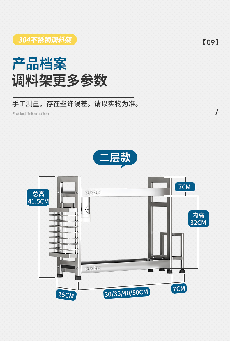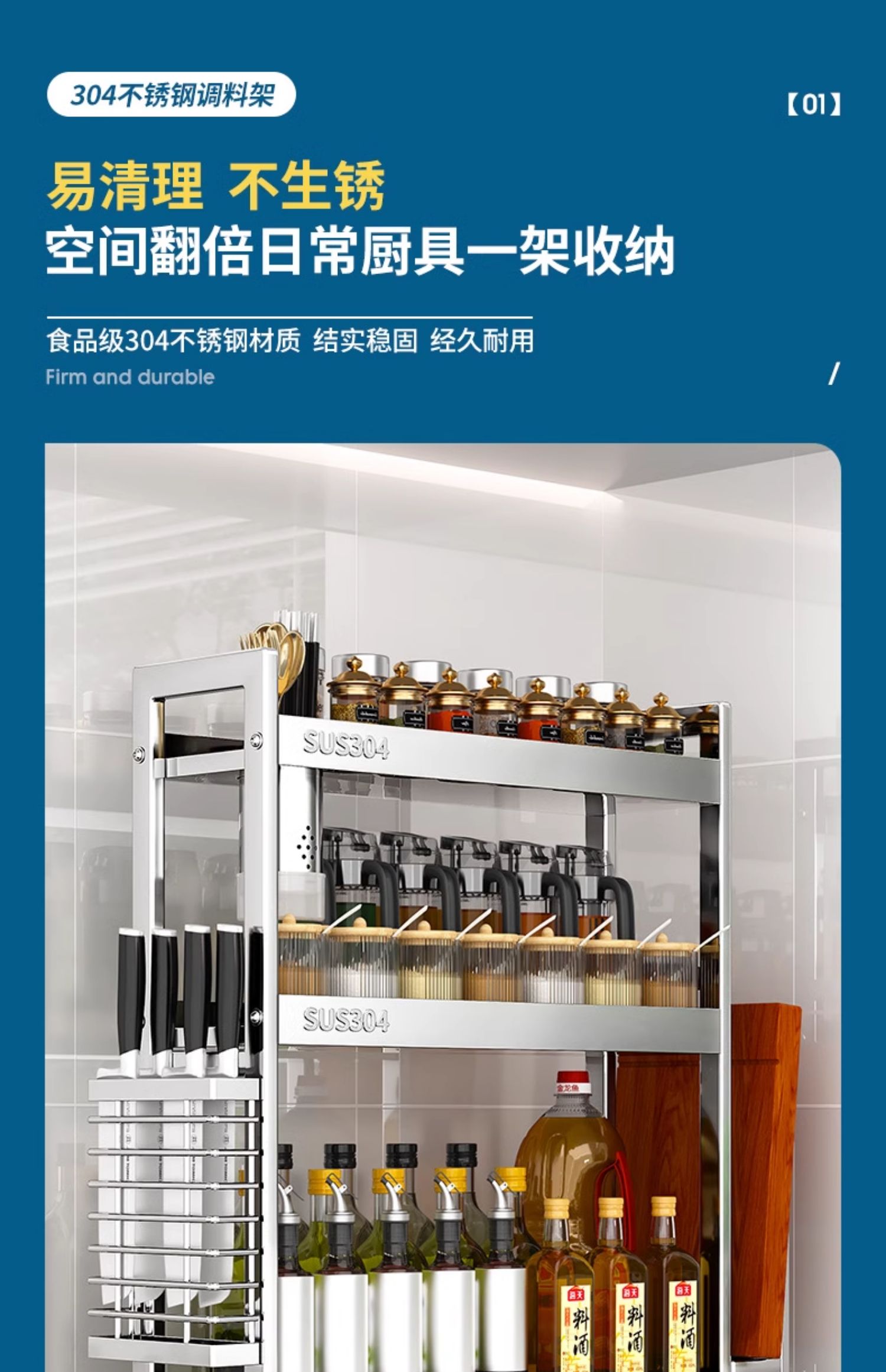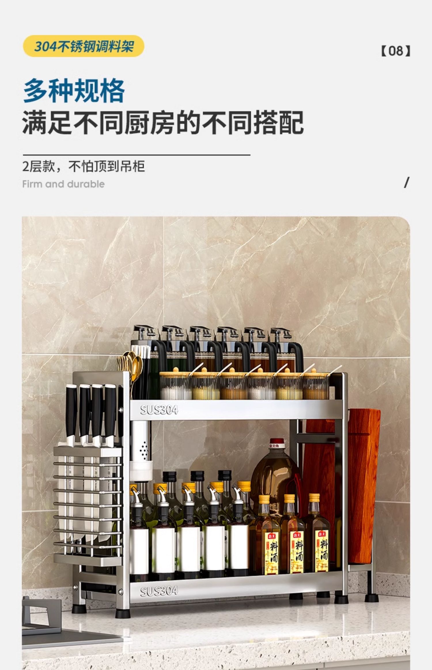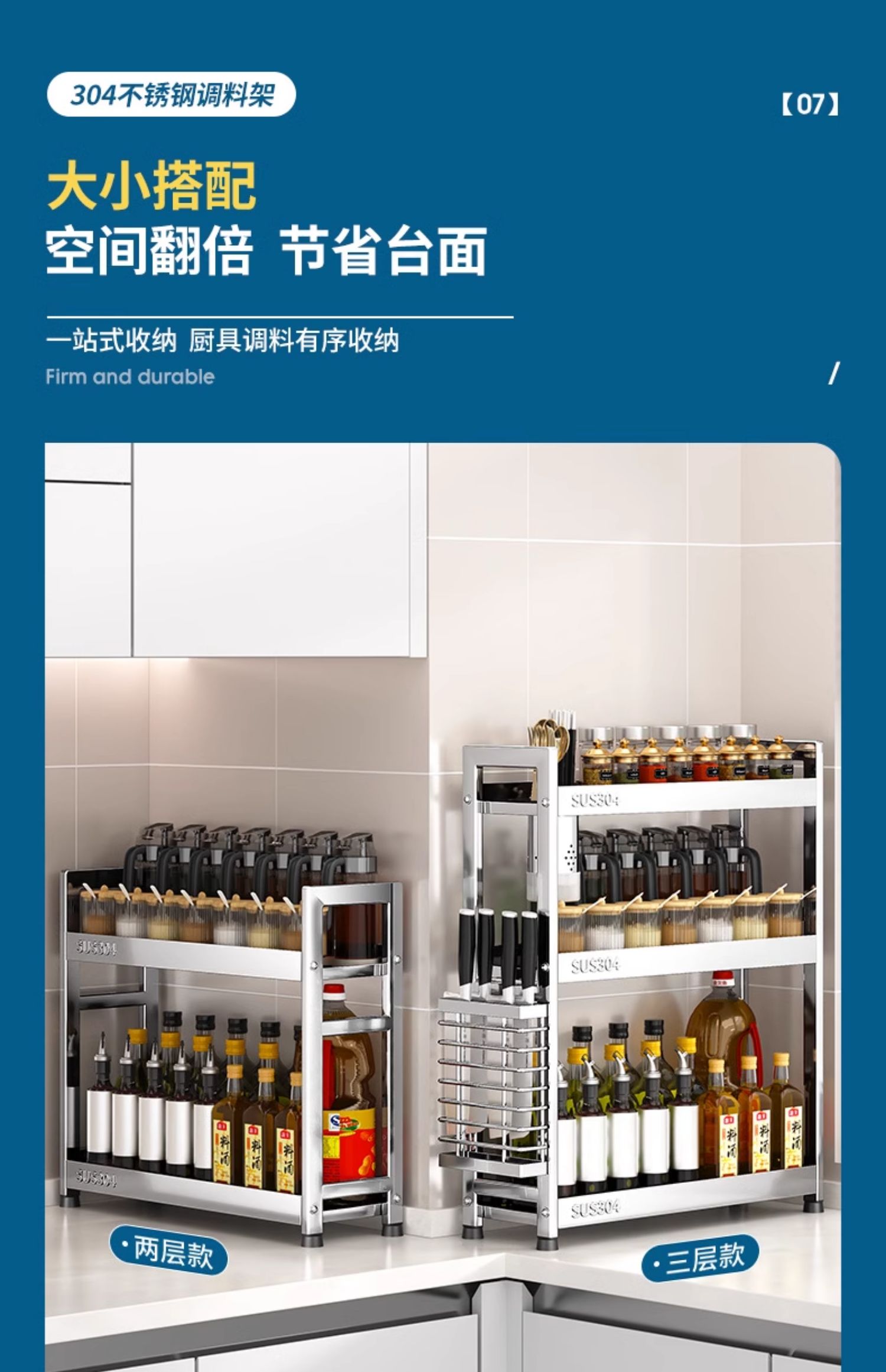 304 스테인레스 스틸 주방 조미료 보관 랙 카운터 탑 간장 양념 오일 소금 소스 식초 조미료 보관 랙