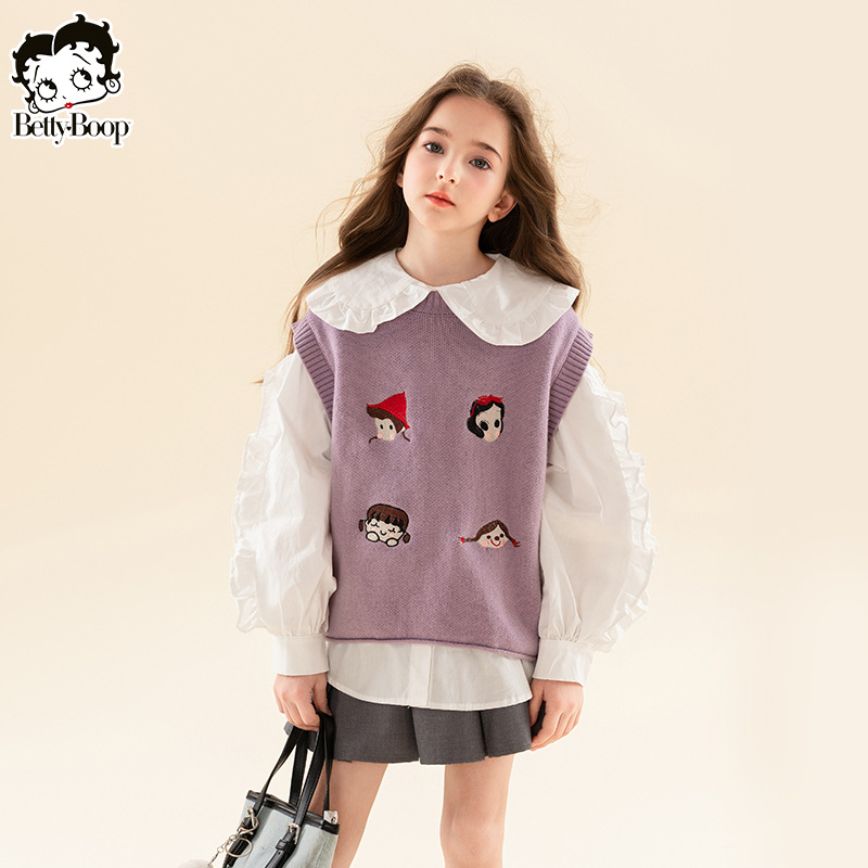 베티 아동복 소녀 셔츠 조끼 세트 2025 봄 새로운 패션 탑 어린이 POLO 셔츠 투피스 세트스토어 가기