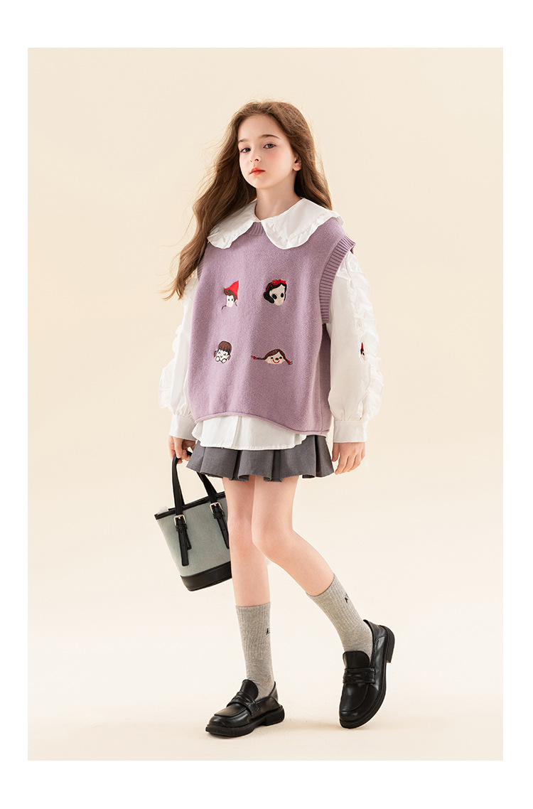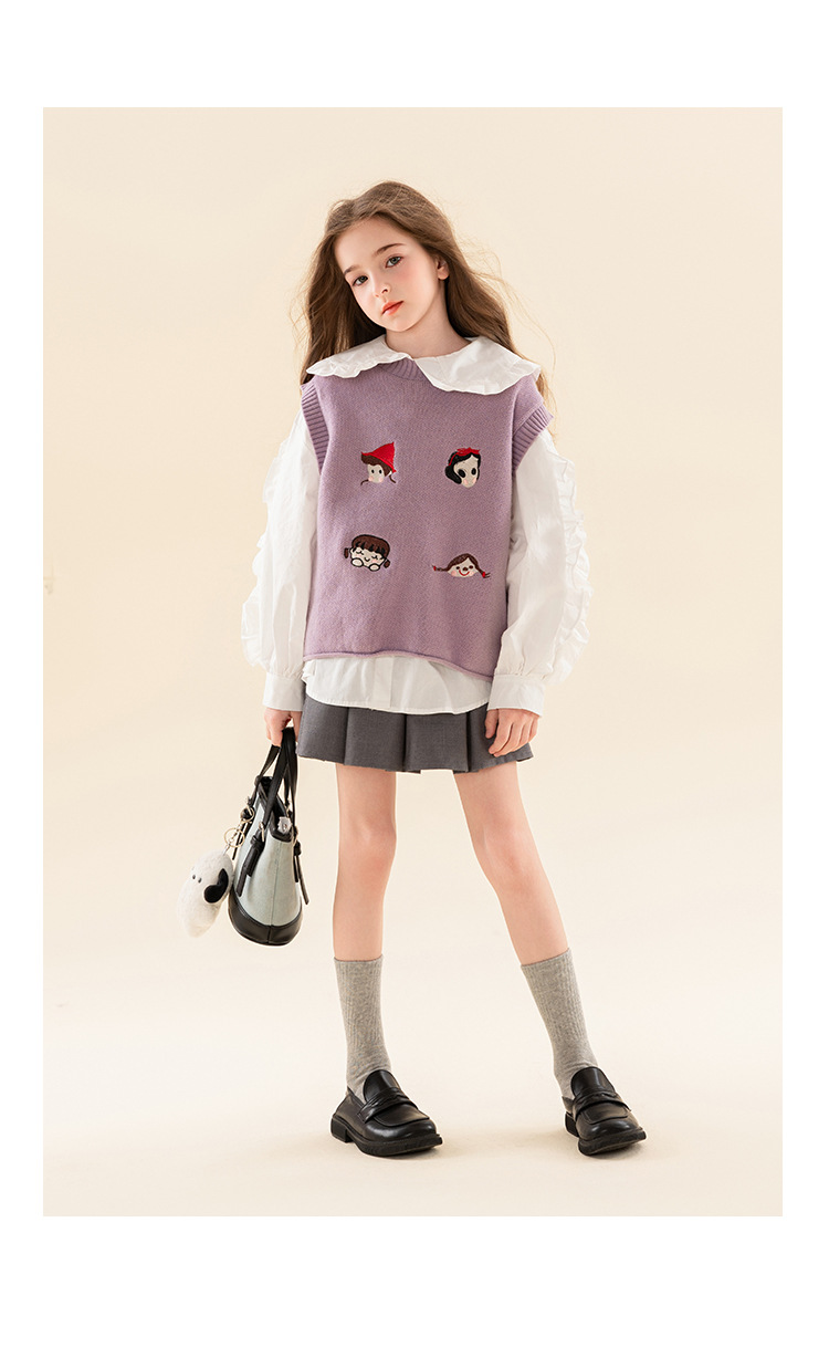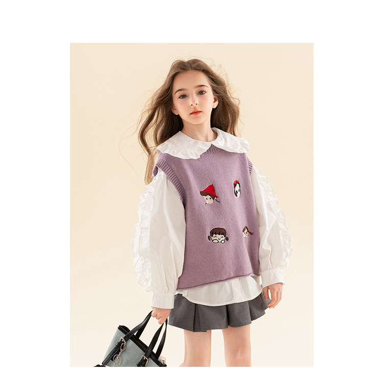 베티 아동복 소녀 셔츠 조끼 세트 2025 봄 새로운 패션 탑 어린이 POLO 셔츠 투피스 세트