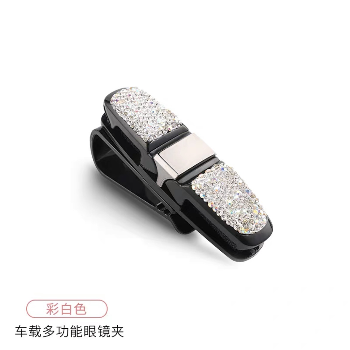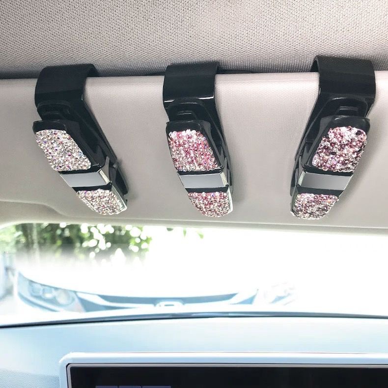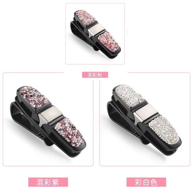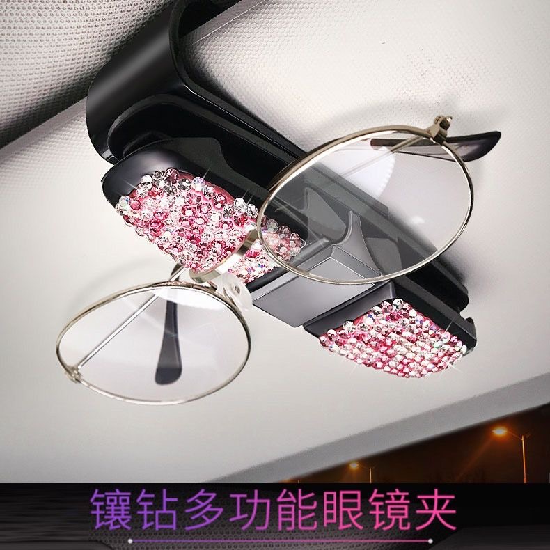 자동차 안경 클립 다기능 자동차 선글라스 홀더 자동차 아이 박스 귀여운 다이아몬드가 박힌 여성 자동차 선 바이저 클립