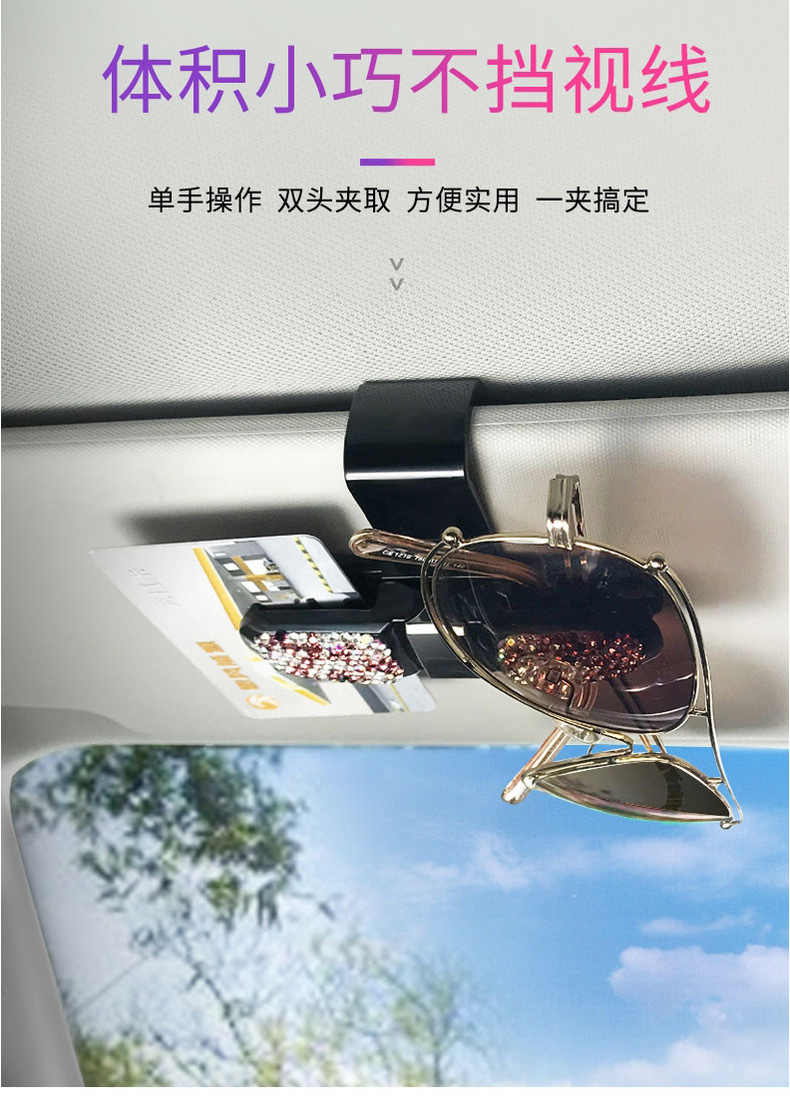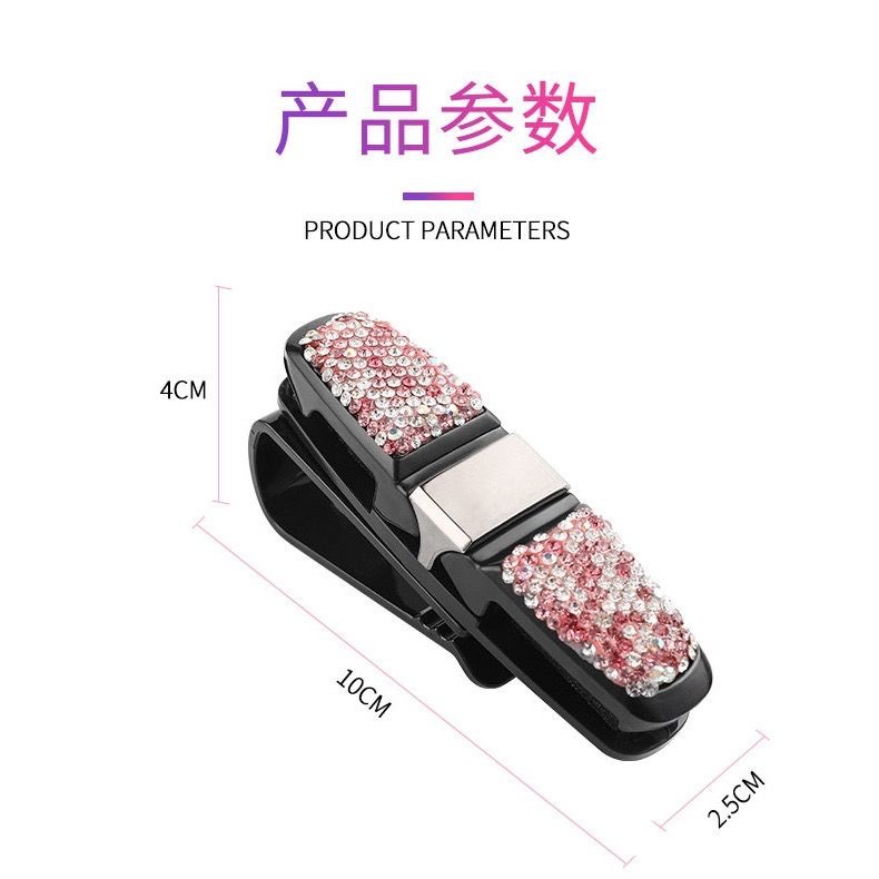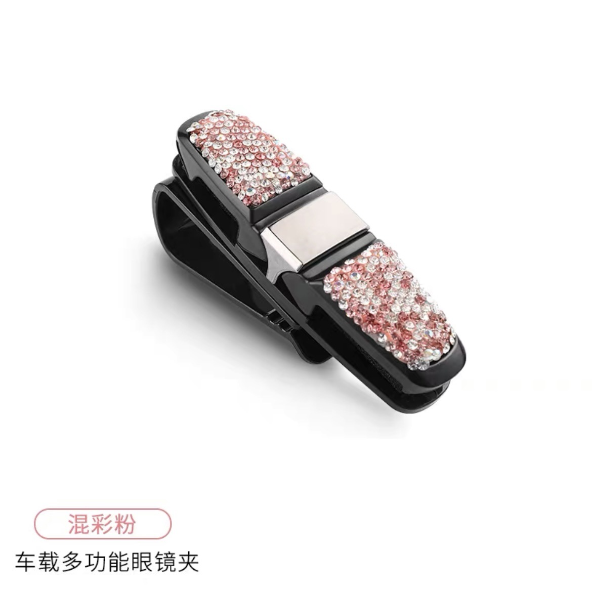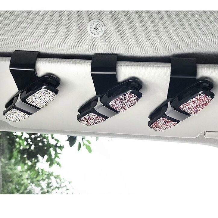 자동차 안경 클립 다기능 자동차 선글라스 홀더 자동차 아이 박스 귀여운 다이아몬드가 박힌 여성 자동차 선 바이저 클립