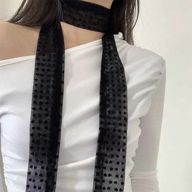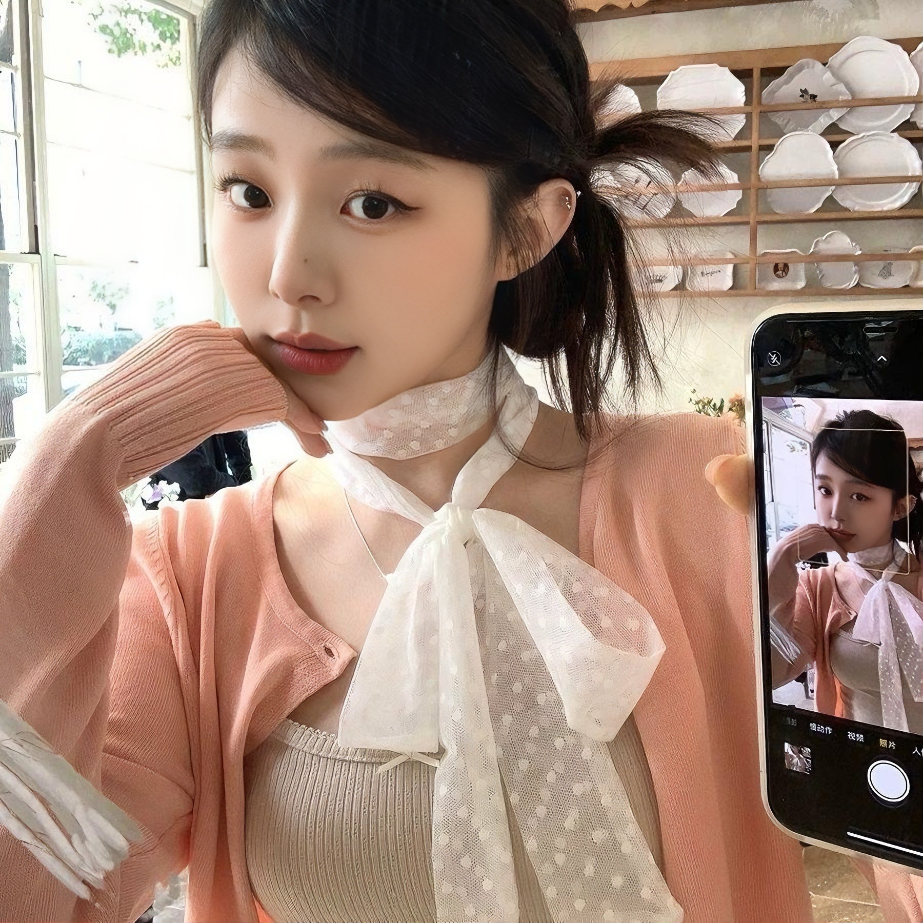 한국 스타일의 분위기 화이트 레이스 실크 스카프 여자 2025 새로운 스타일 봄과 여름 우아한 올 매치 넥 롱 리본 스카프