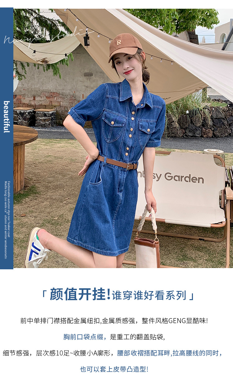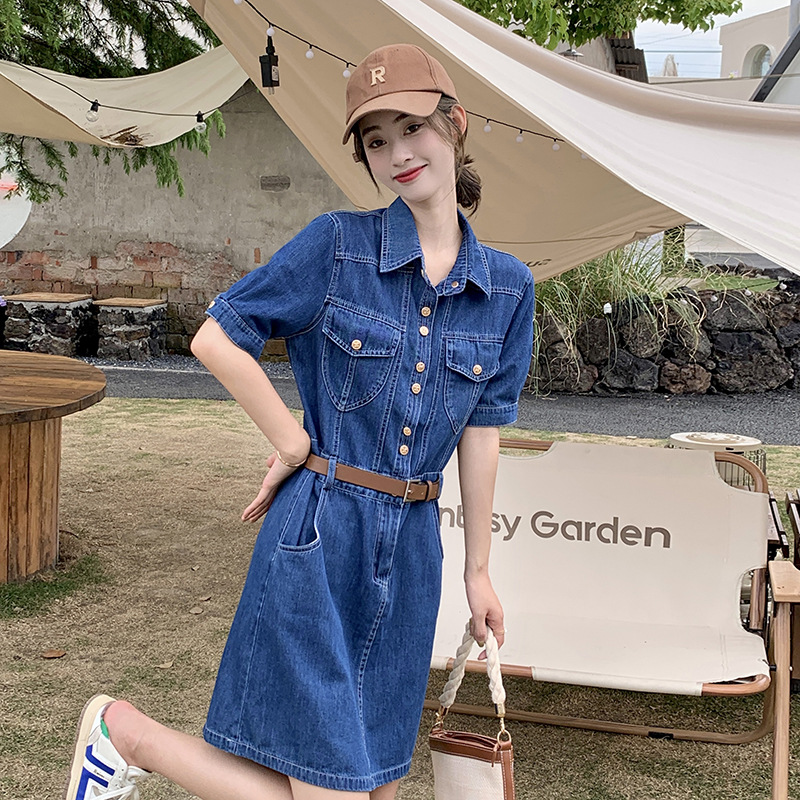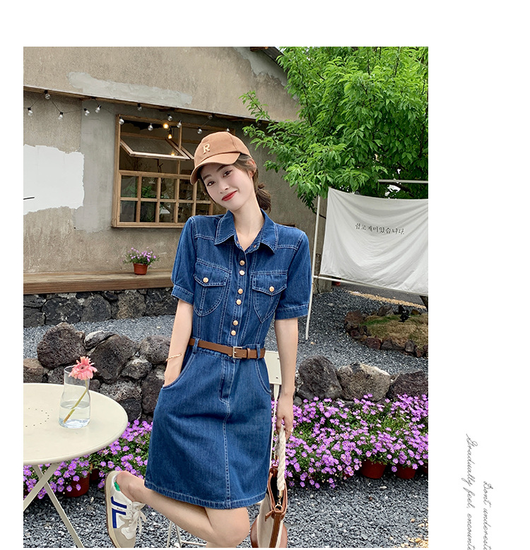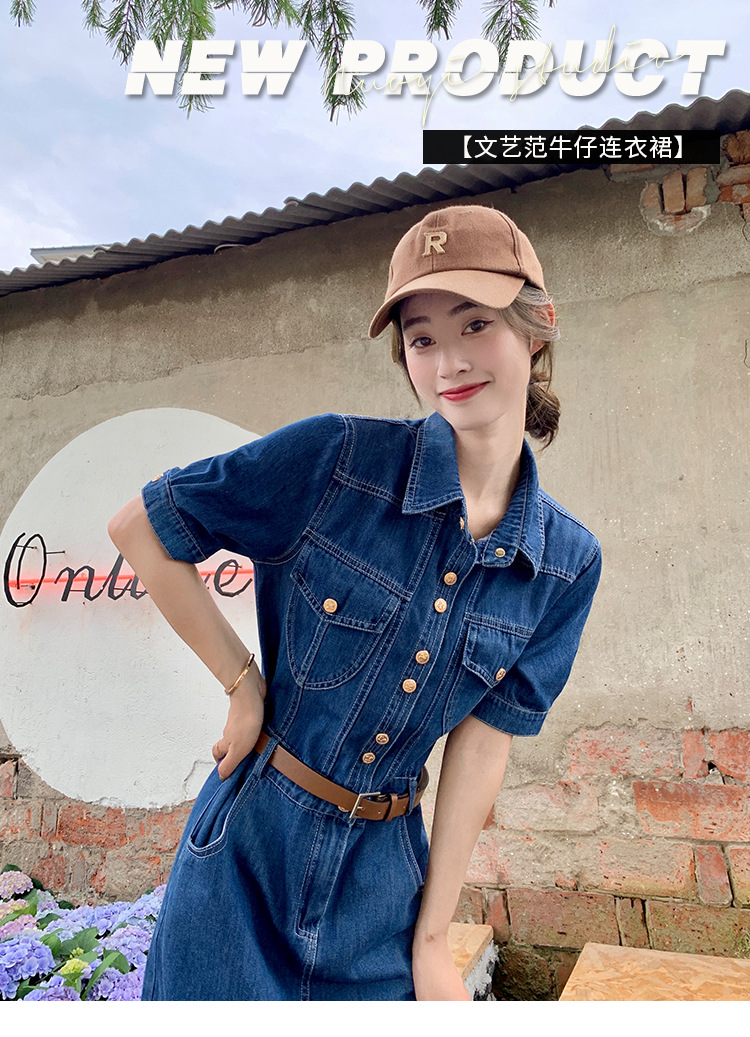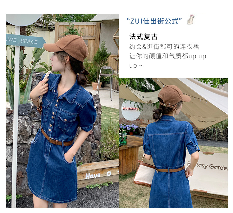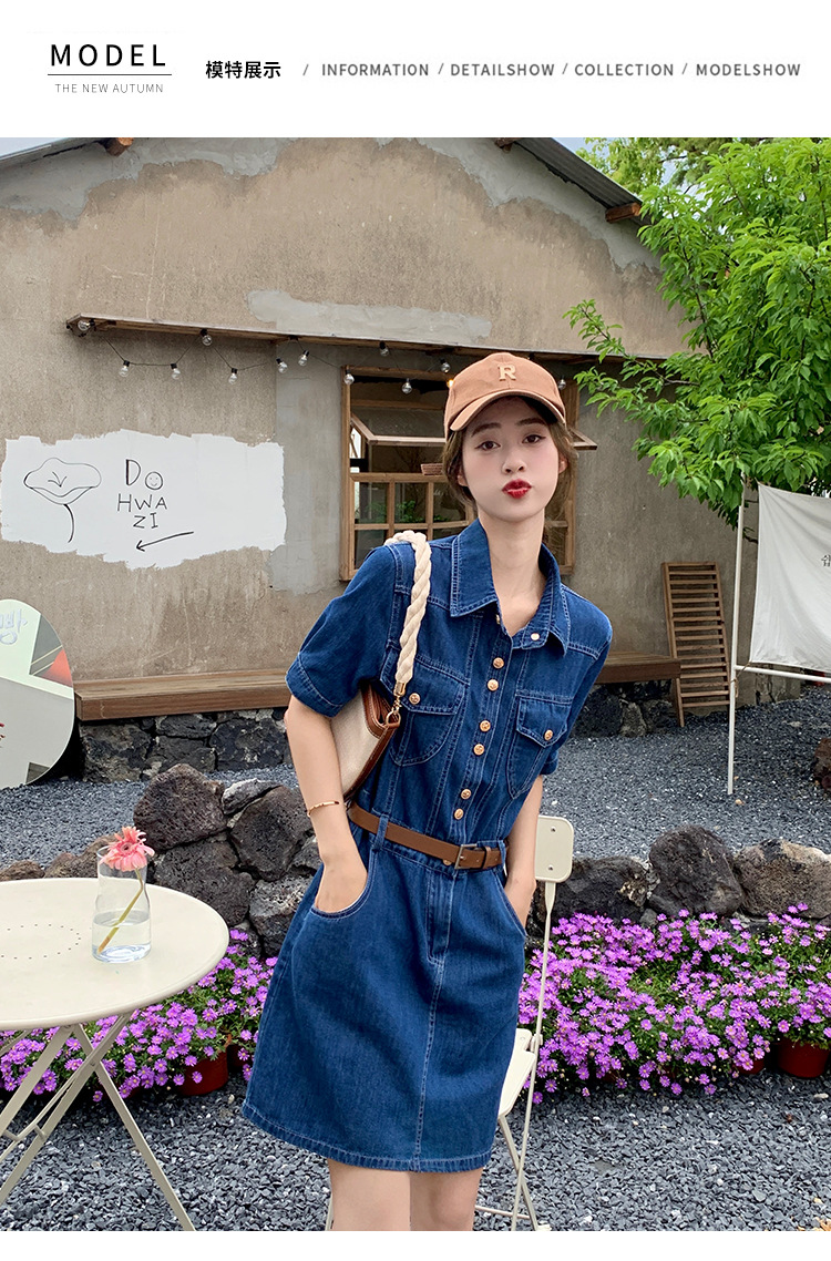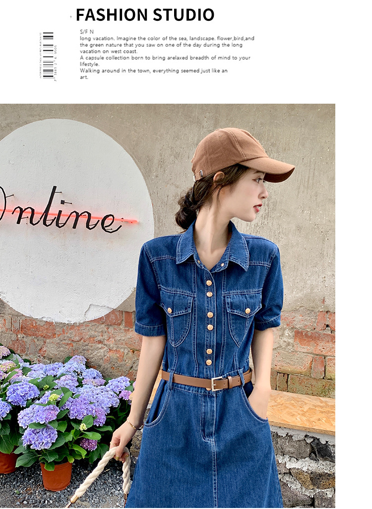 인터넷 유명 데님 원피스 여성 여름 얇은 프랑스 중형 스커트 Platycodon Grandiflorum 허리 우아한 엉덩이 스커트