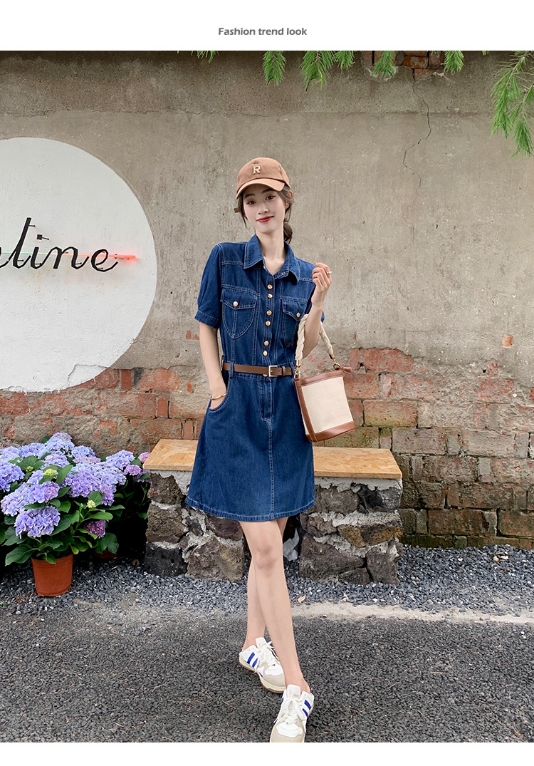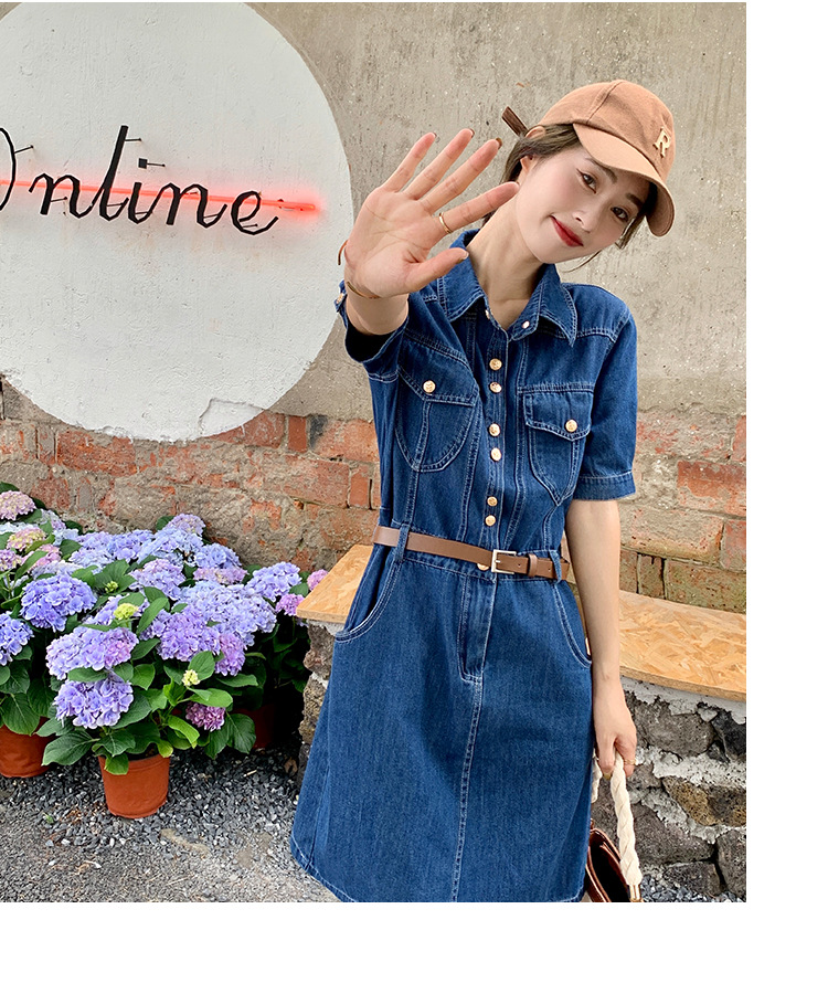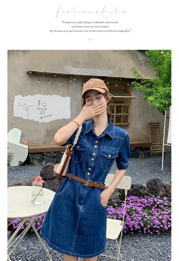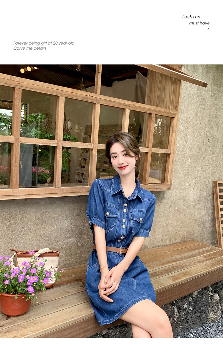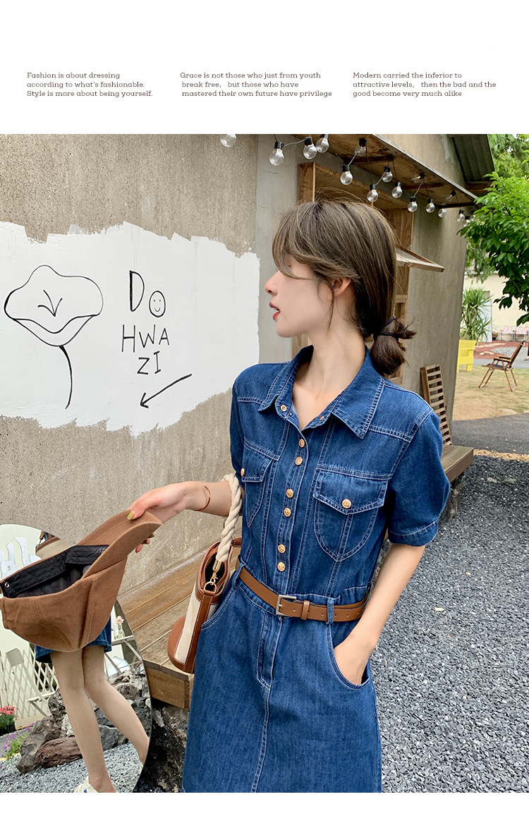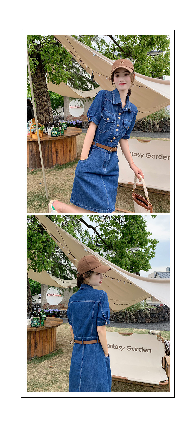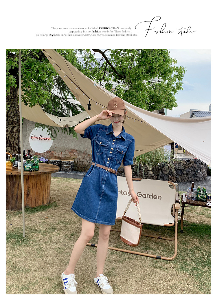 인터넷 유명 데님 원피스 여성 여름 얇은 프랑스 중형 스커트 Platycodon Grandiflorum 허리 우아한 엉덩이 스커트