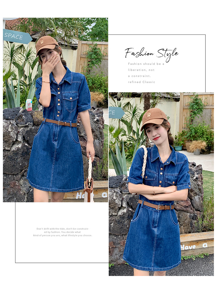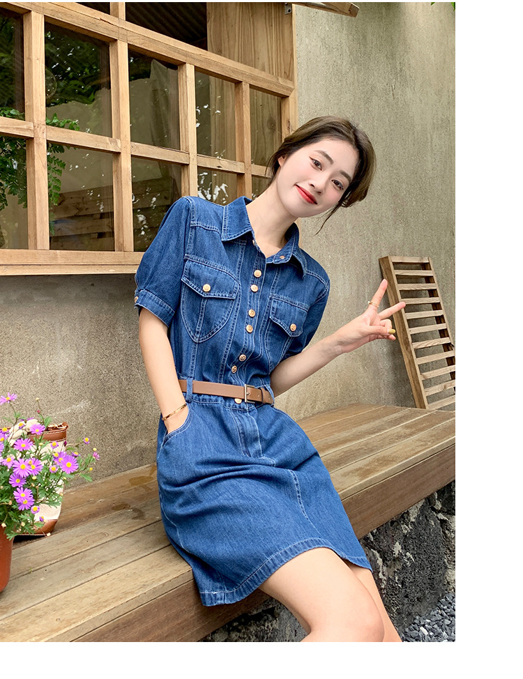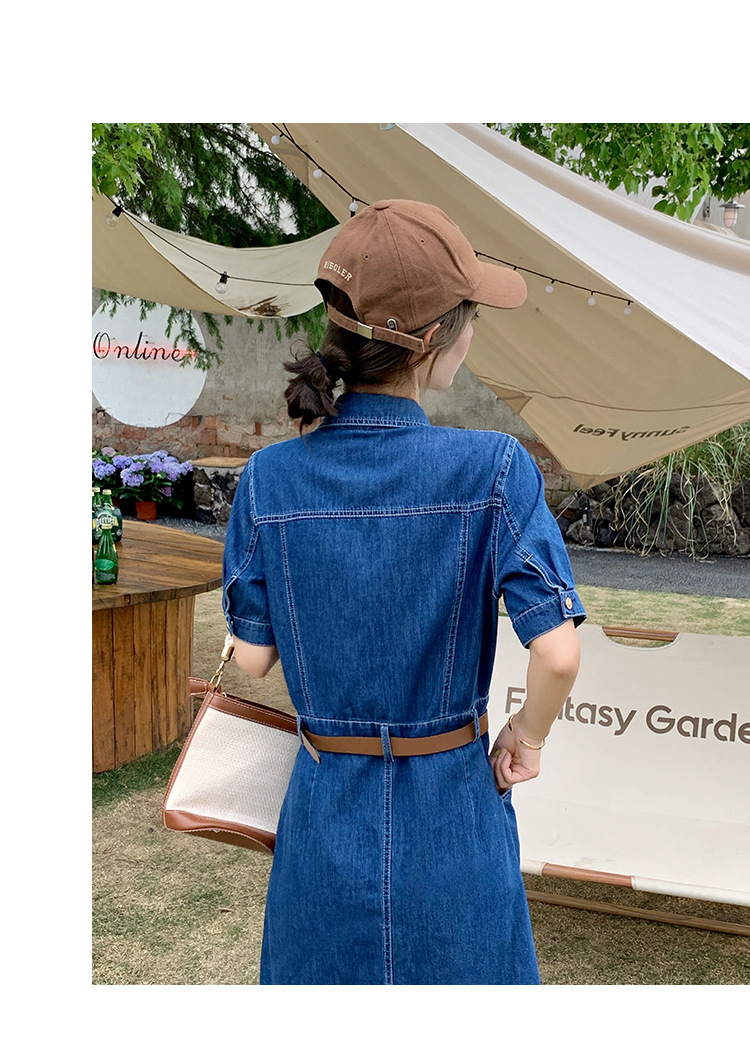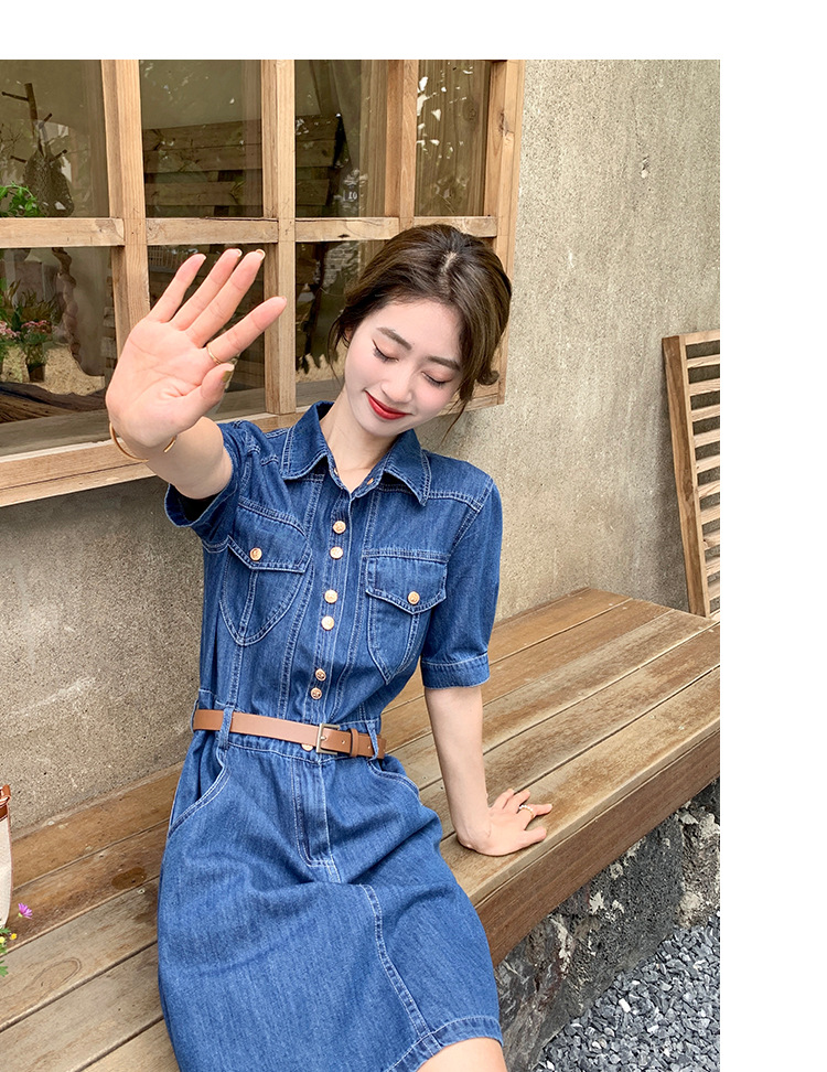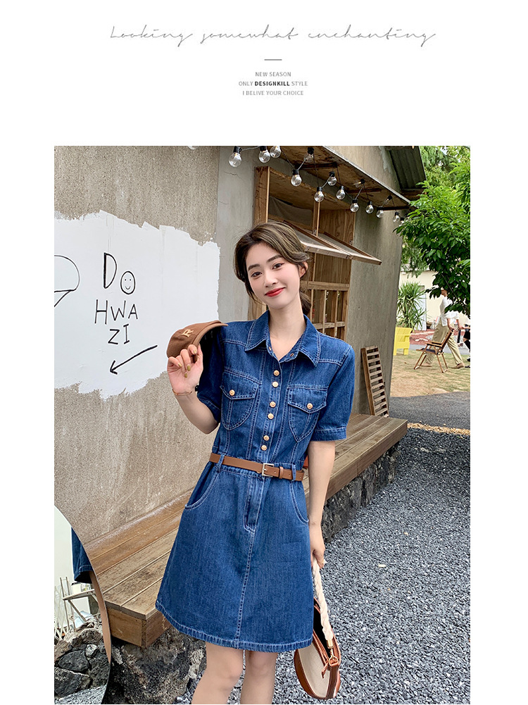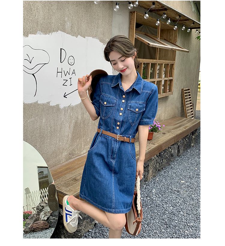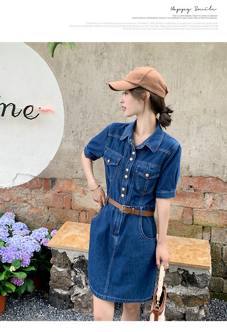 인터넷 유명 데님 원피스 여성 여름 얇은 프랑스 중형 스커트 Platycodon Grandiflorum 허리 우아한 엉덩이 스커트