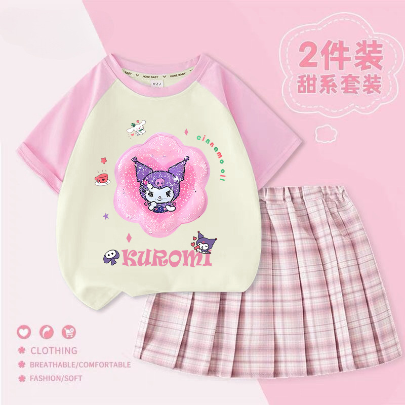 여자 Cullomi Sequins 세트 여름 2025 새로운 중소 아기 소녀 여름 패턴 변경 투피스 세트