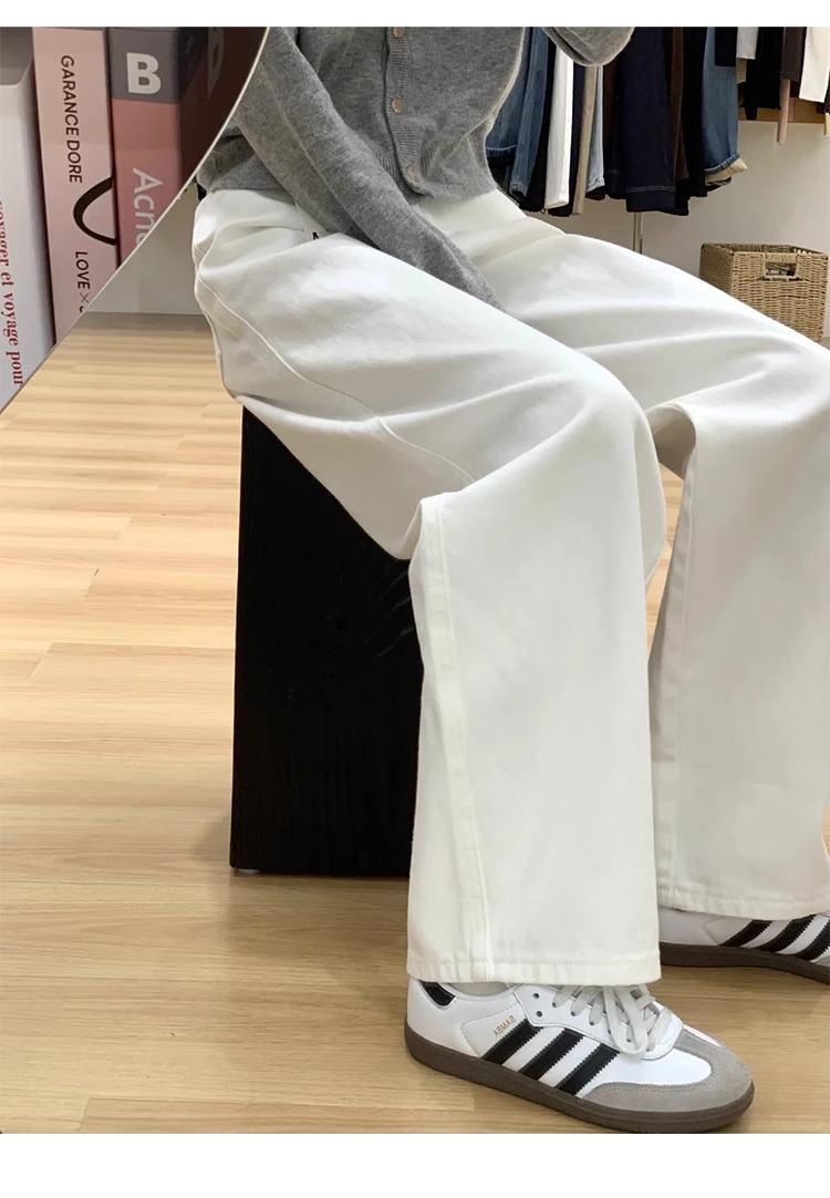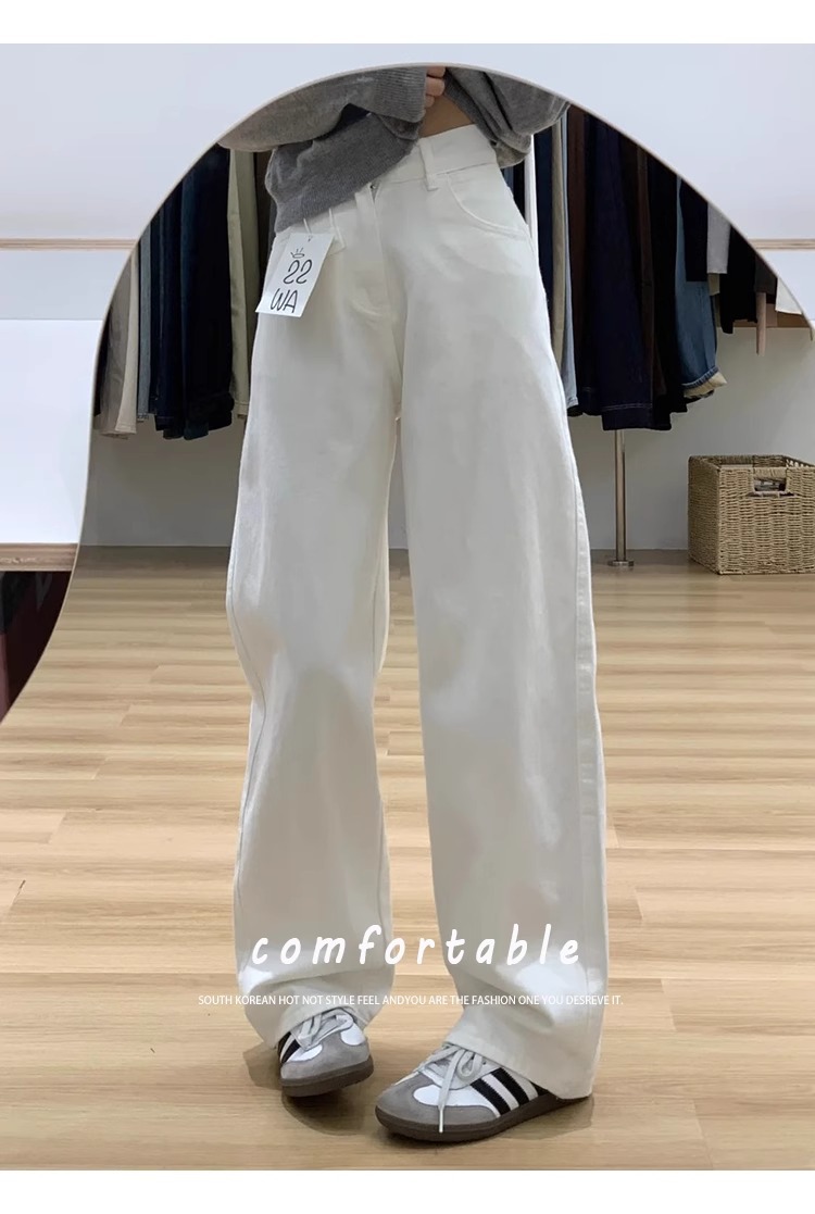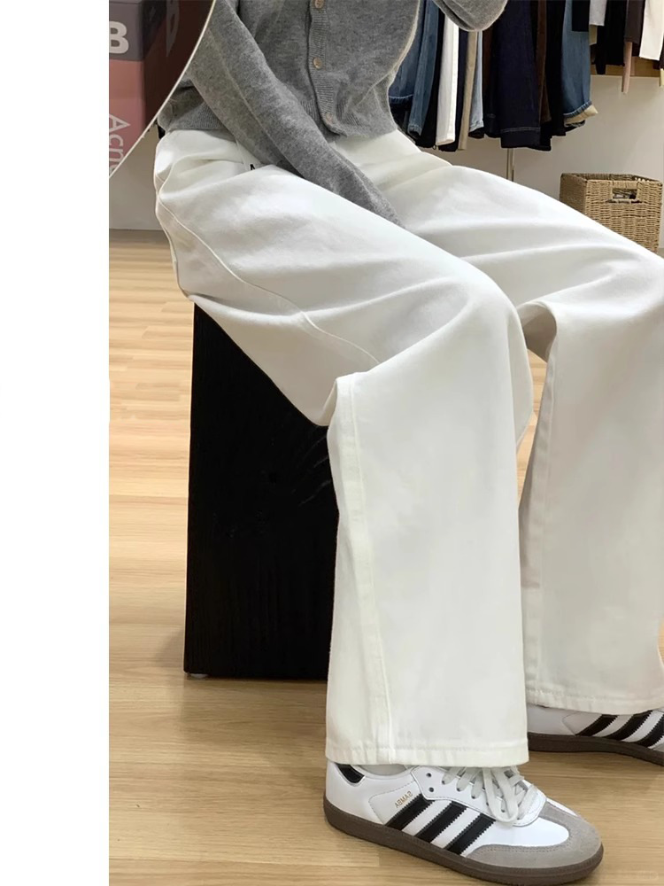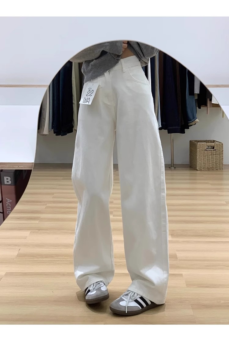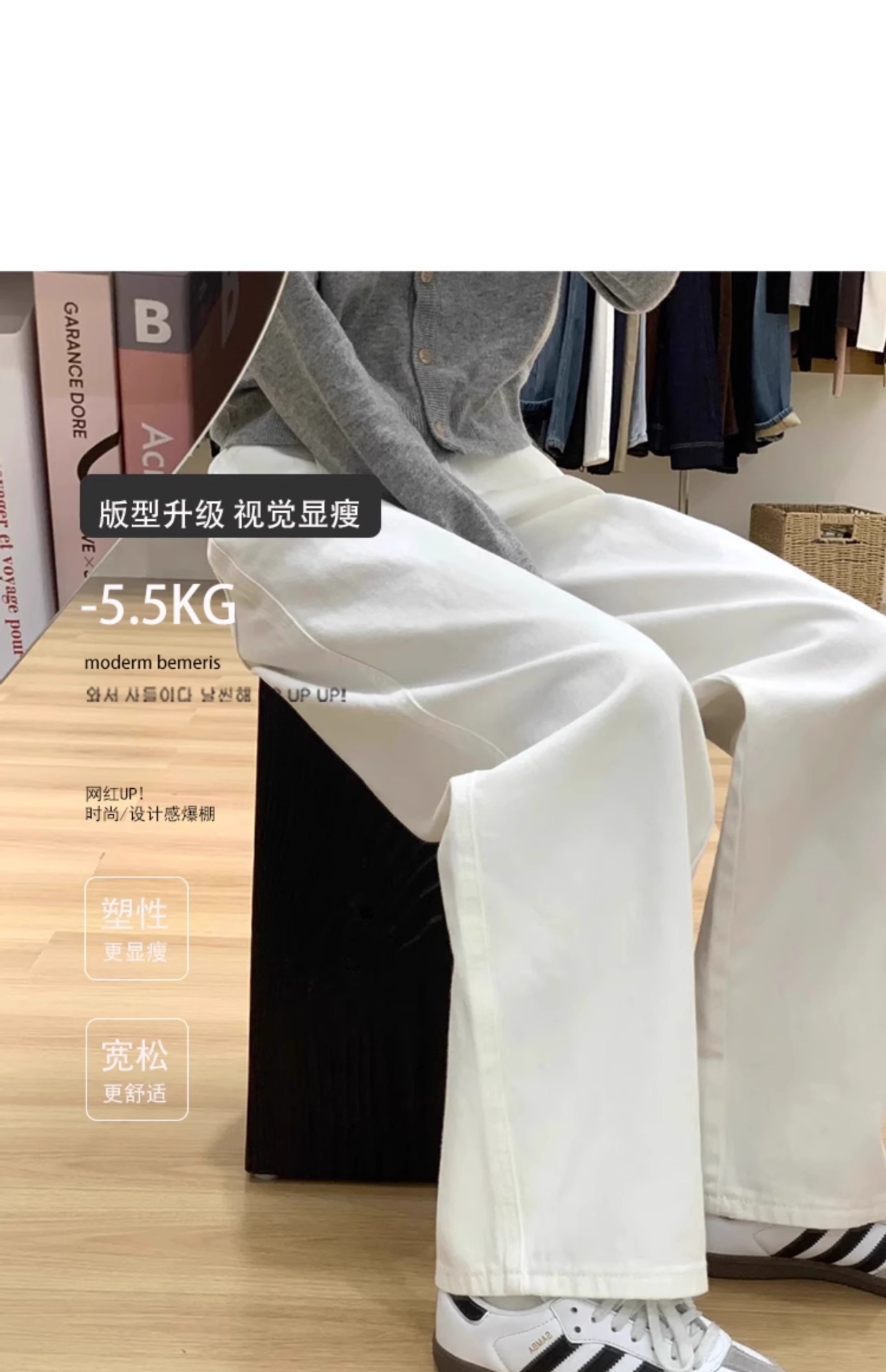 슬림핏 와이드 레그 화이트 청바지 여성용 2025 년 새 하이 웨이스트 딥 스트레이트 팬츠스토어 가기