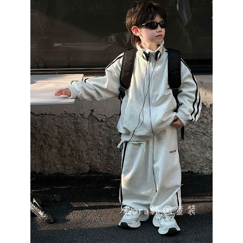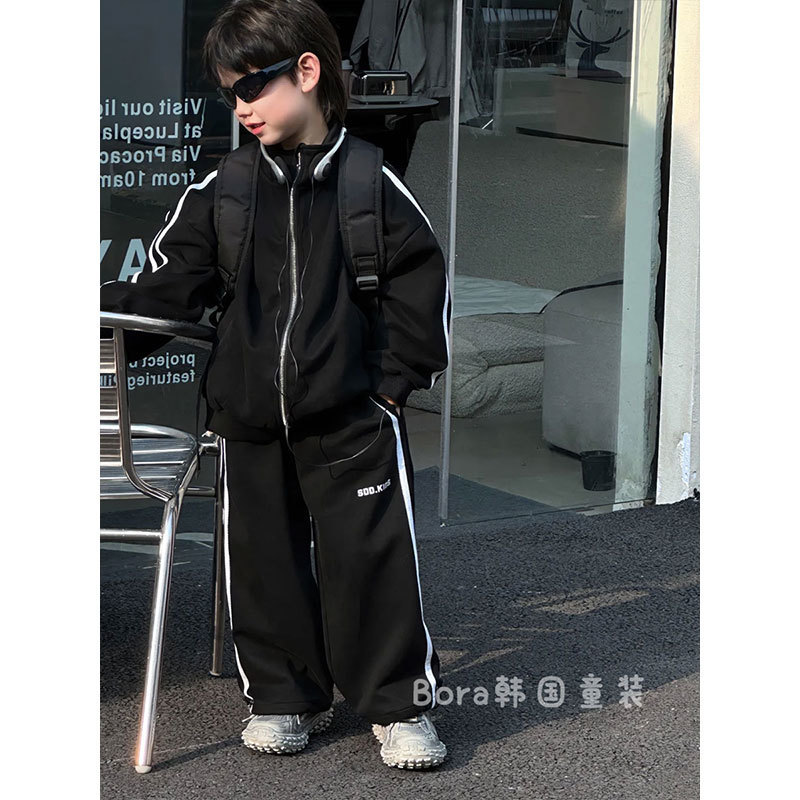 소년 세트 봄 2025 새로운 어린이 스웨터 코트 바지 스포츠 캐주얼 소녀 잘 생긴 유행면스토어 가기
